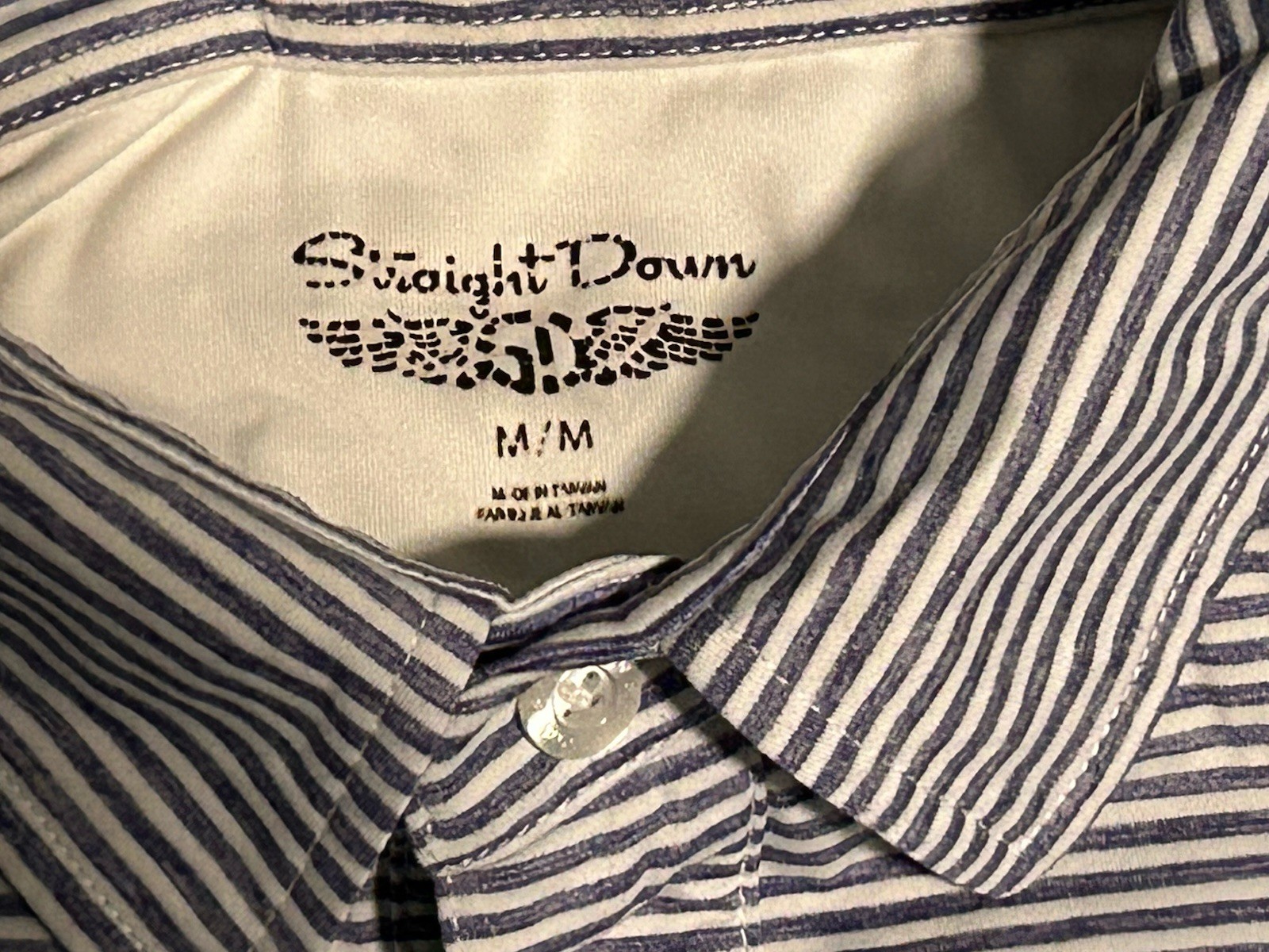 как выглядит STRAIGHT DOWN Mens MD Nylon Blend Stretch Collared Striped Polo S/S Shirt LOGOs фото