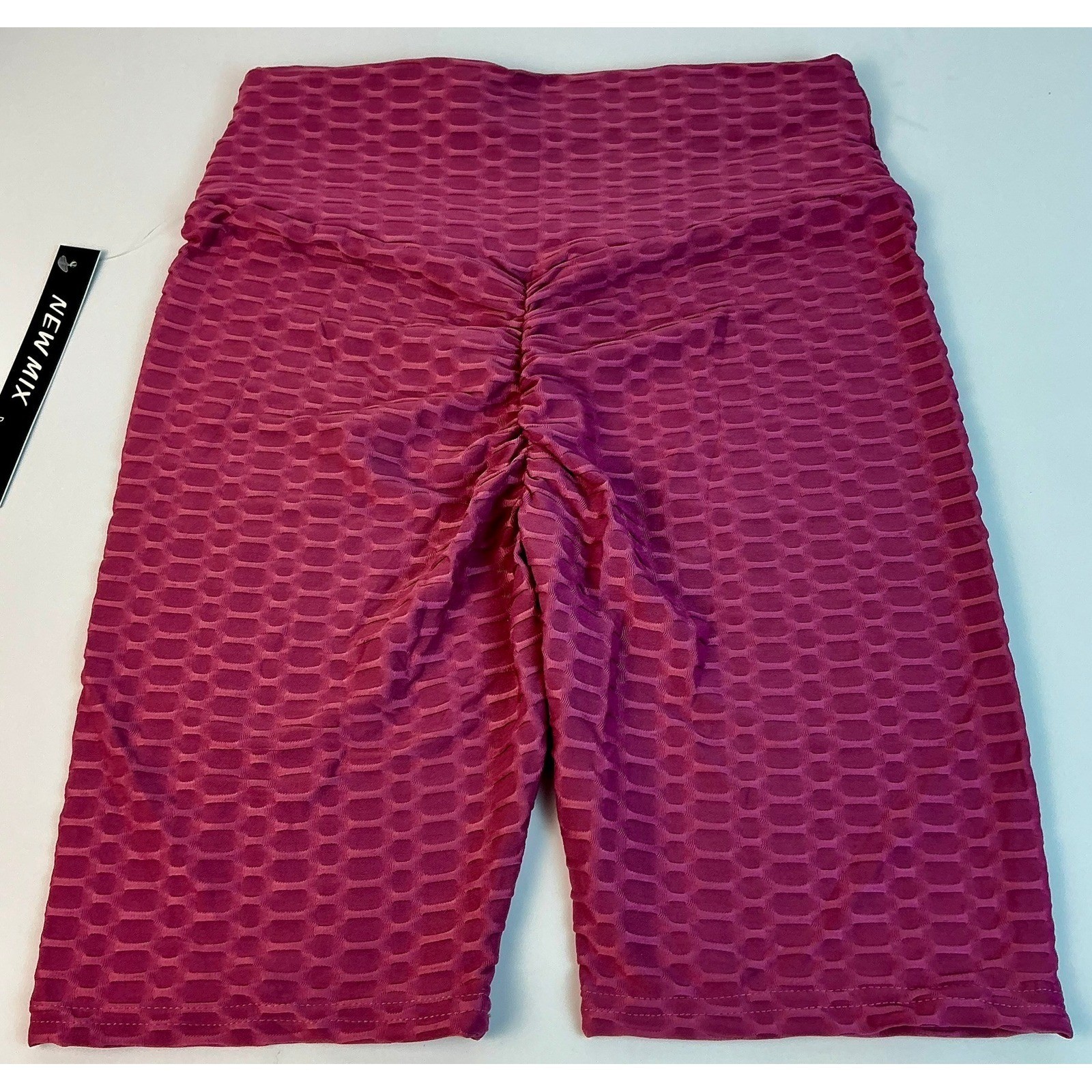 NEW MIX Mauve Honeycomb Textured Workout Tank Top Biker Shorts Set Size S/M