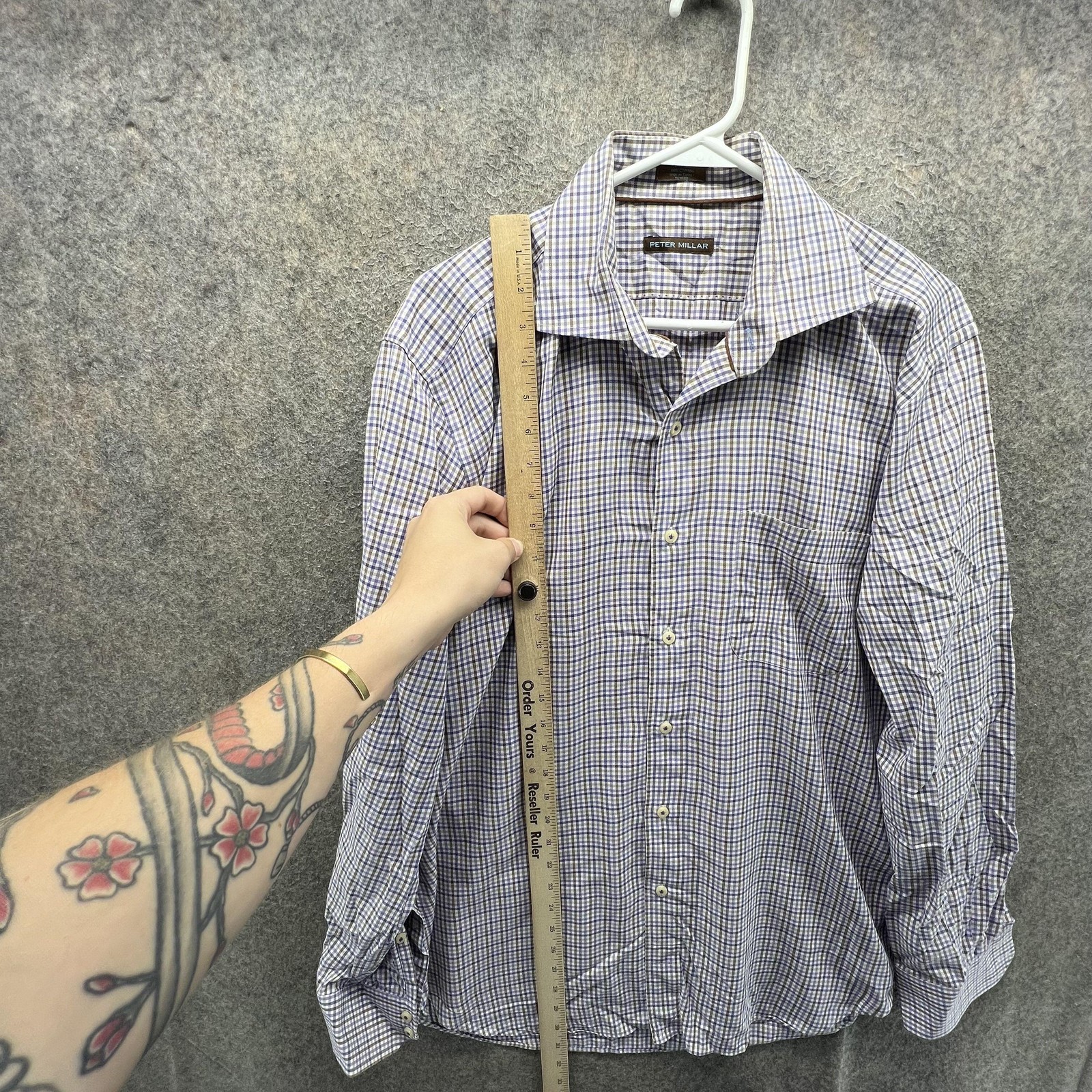 как выглядит Peter Millar Dress Shirt Mens Large Blue Check Cotton Long Sleeve Button Front фото