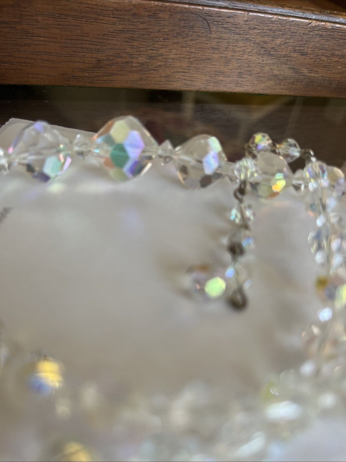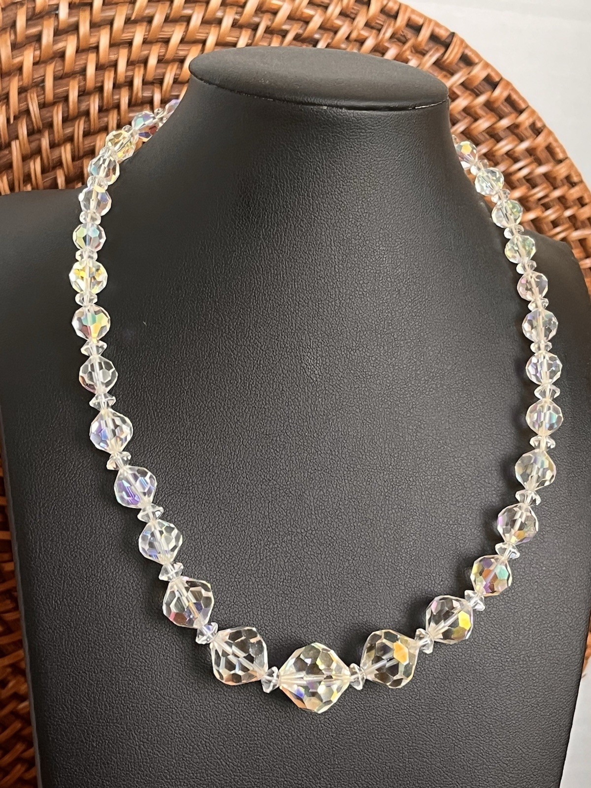 как выглядит VTG Aurora Borealis Crystal Bead Necklace Faceted Graduated AB 15 - 18 Choker фото
