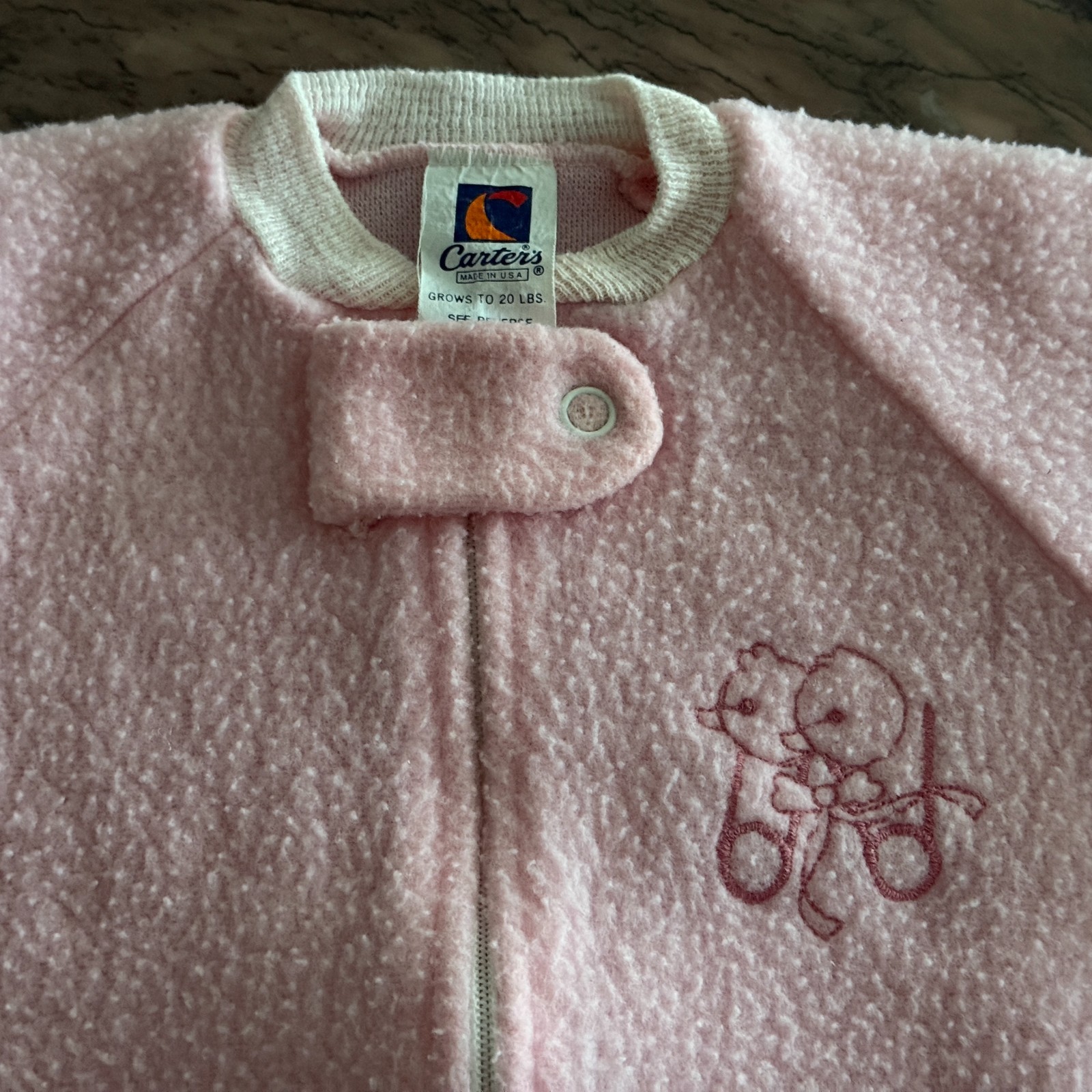 Closure: Snaps, Zipper on fleece sleeper