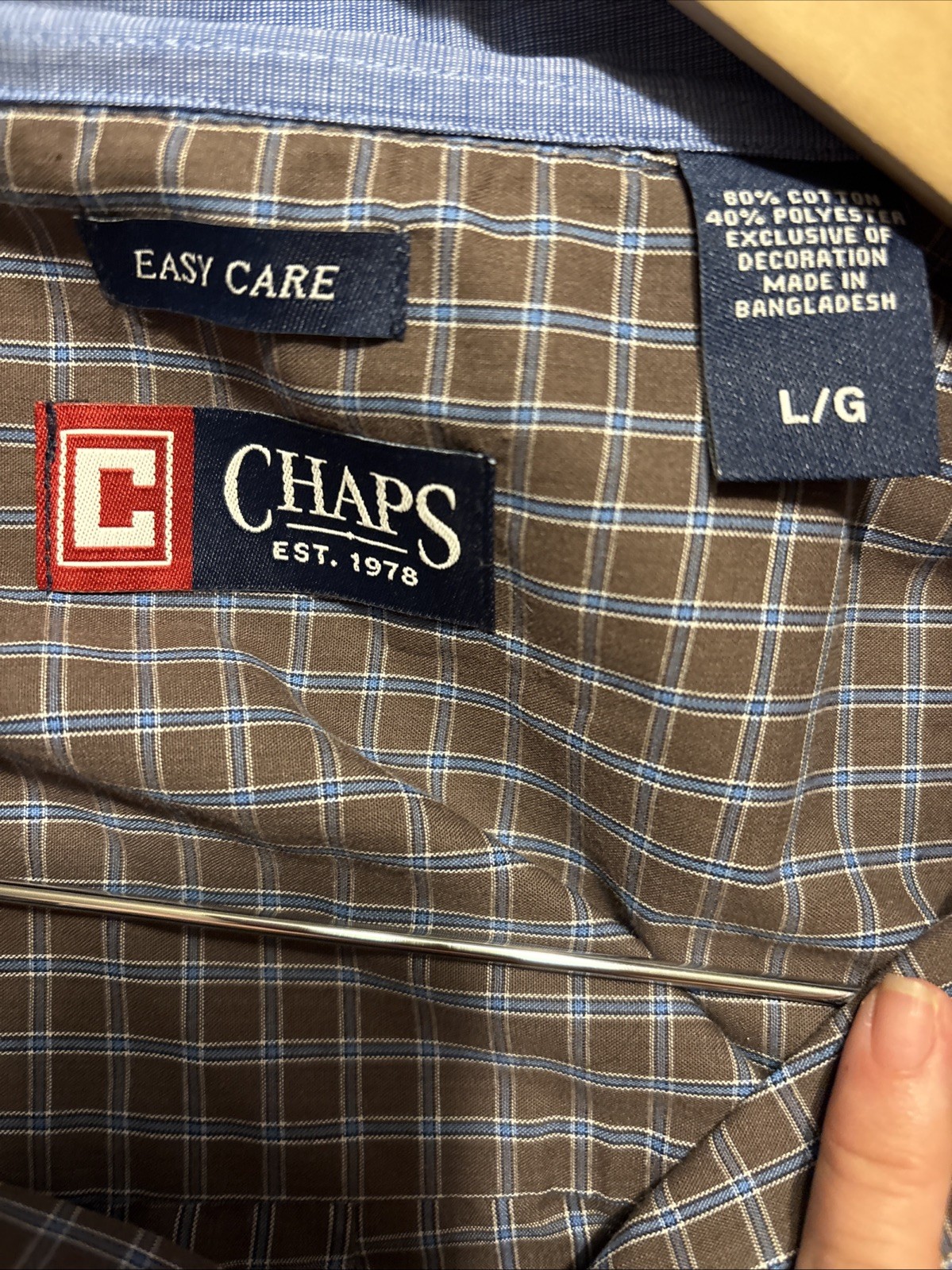 как выглядит NWT Chaps Mens Button Down Dress Shirt, Brown, L b5 фото