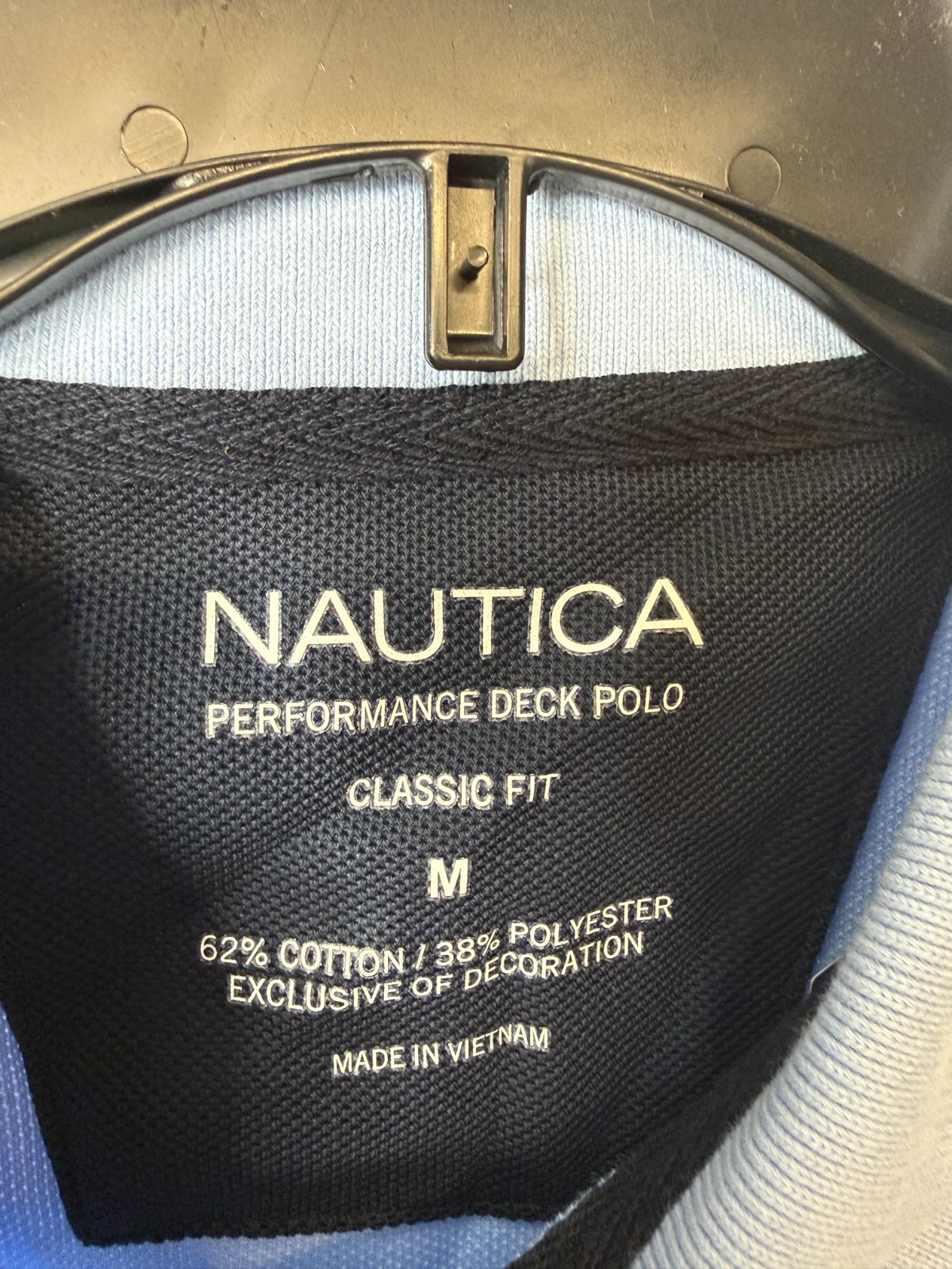 Nautica Mens Noon Blue Classic Fit Wicking Performance Deck Polo Shirt Size M