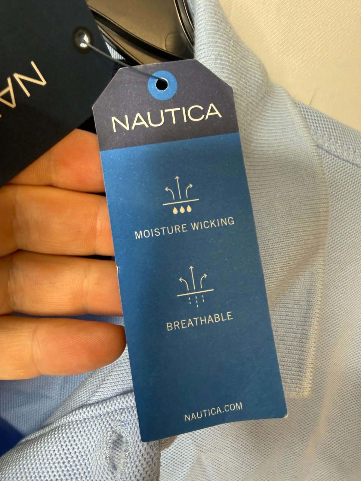 как выглядит Nautica Mens Noon Blue Classic Fit Wicking Performance Deck Polo Shirt Size M фото