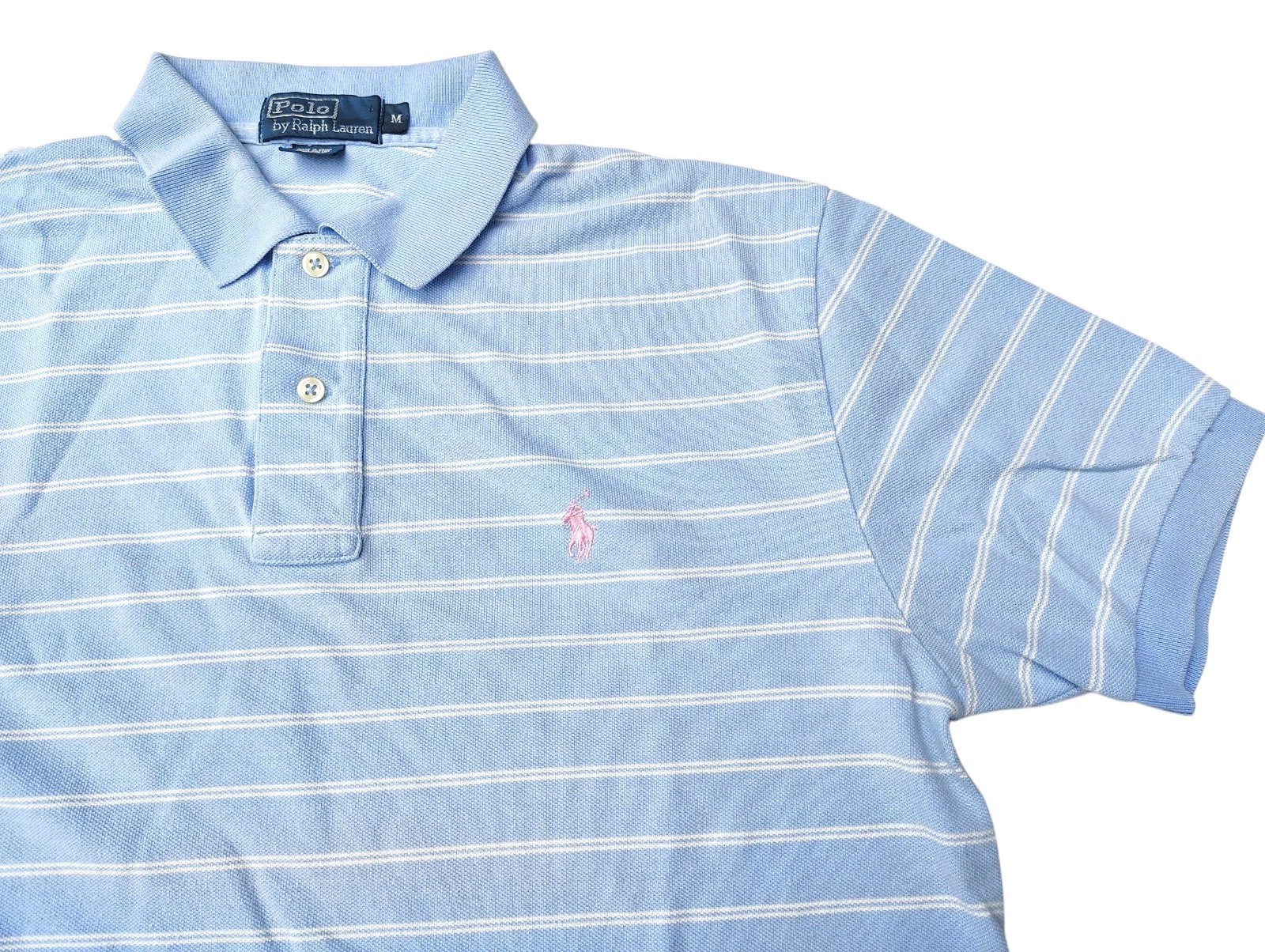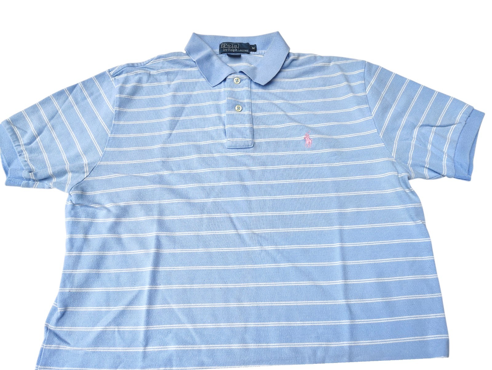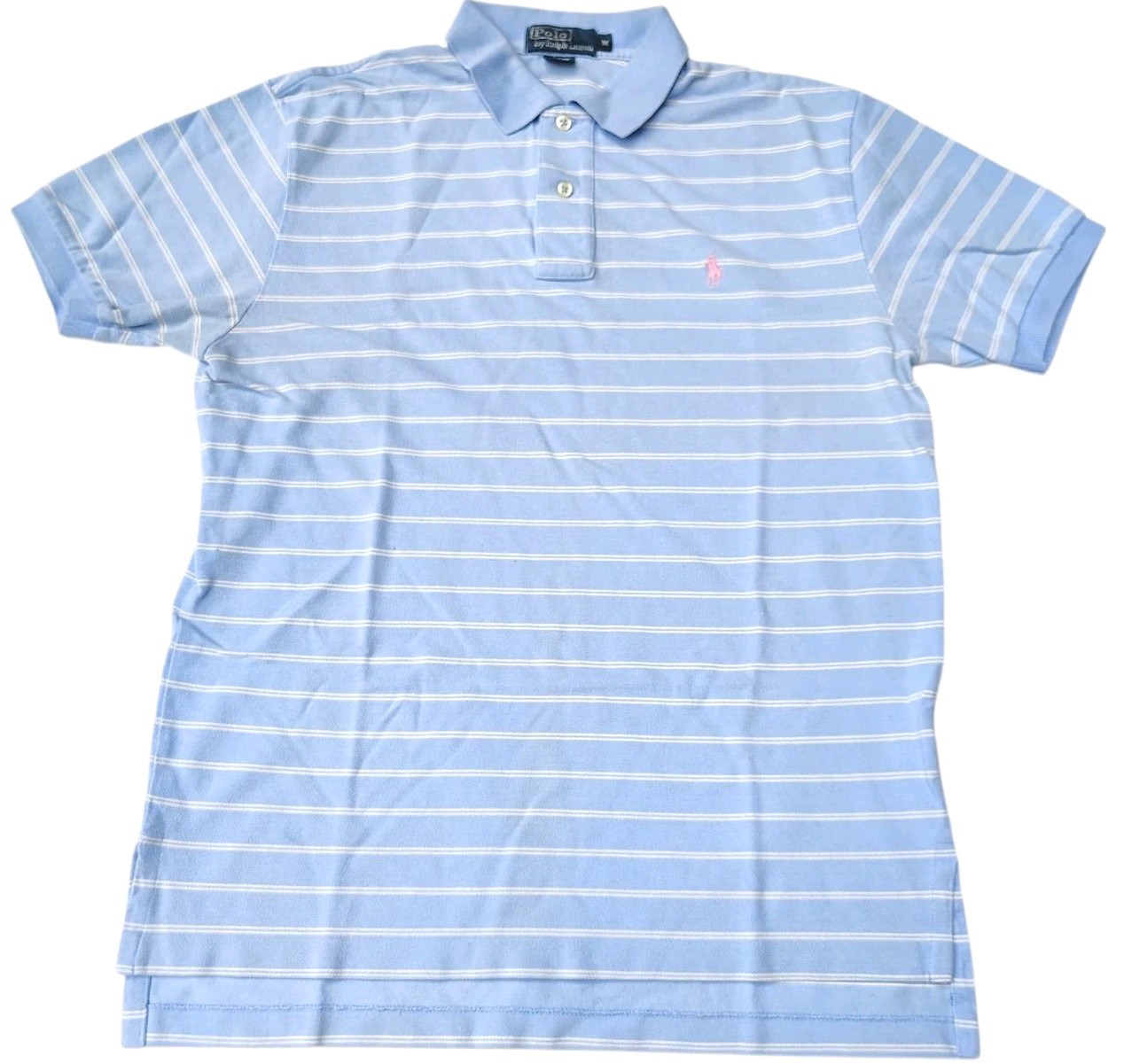 Polo Ralph Lauren Mens Medium Short Sleeve Blue and White Cotton Polo Shirt