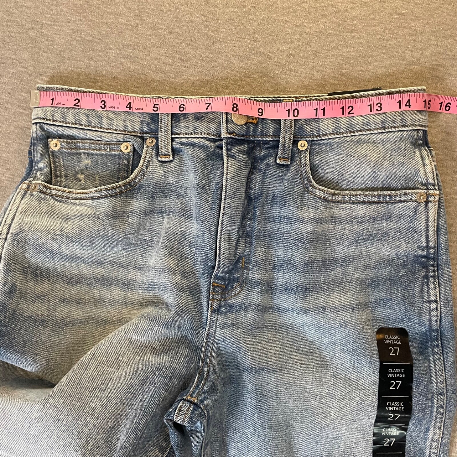 Waist Size: 27 in, measured 29-30 in, see photos