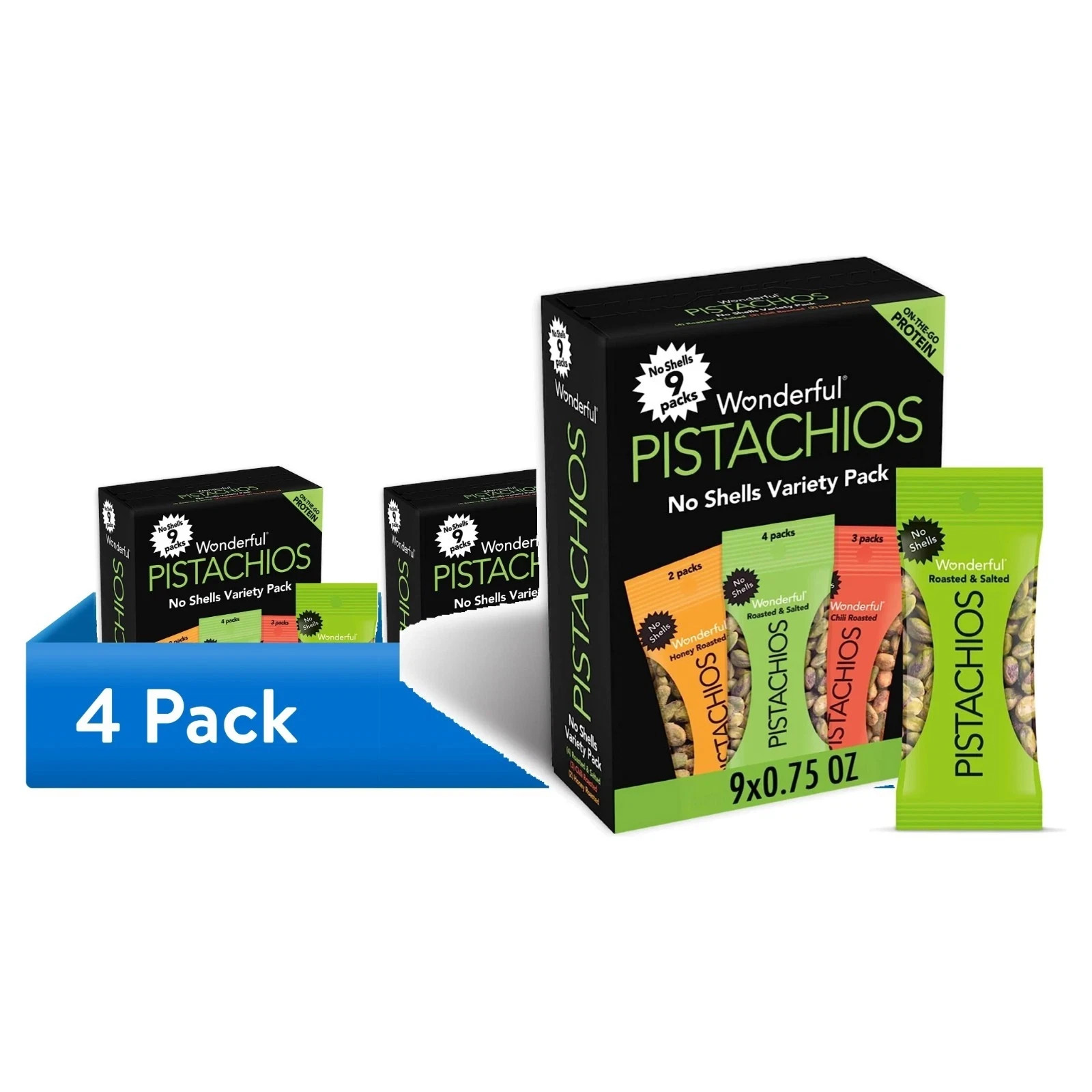 Wonderful Pistachios, No Shells Variety Pack Nuts, 0.75 Ounce Bags Pack of 9