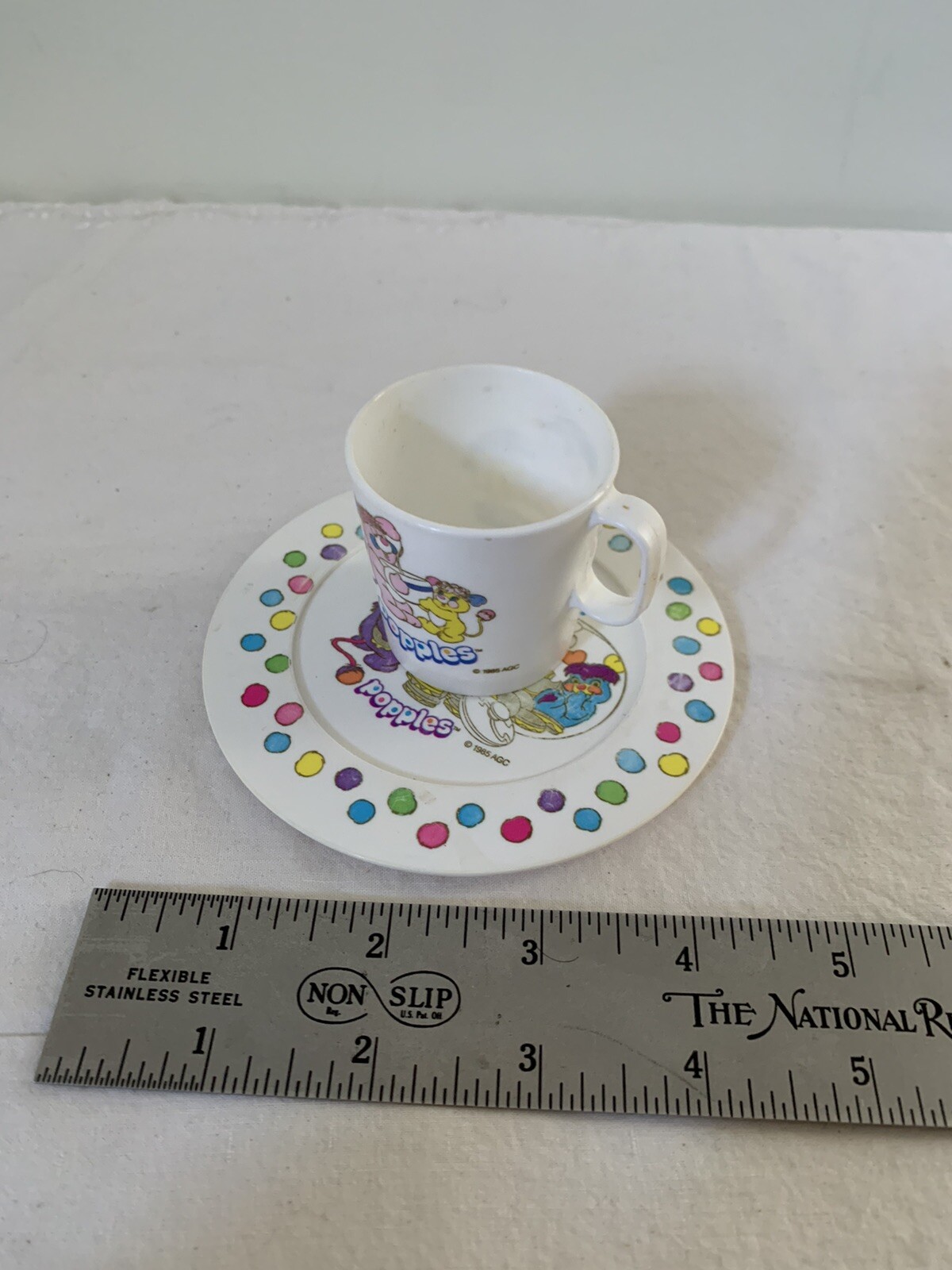 Vintage Popples Mini Plastic Plate and Cup 1985 Chilton USA Child Toy One Set