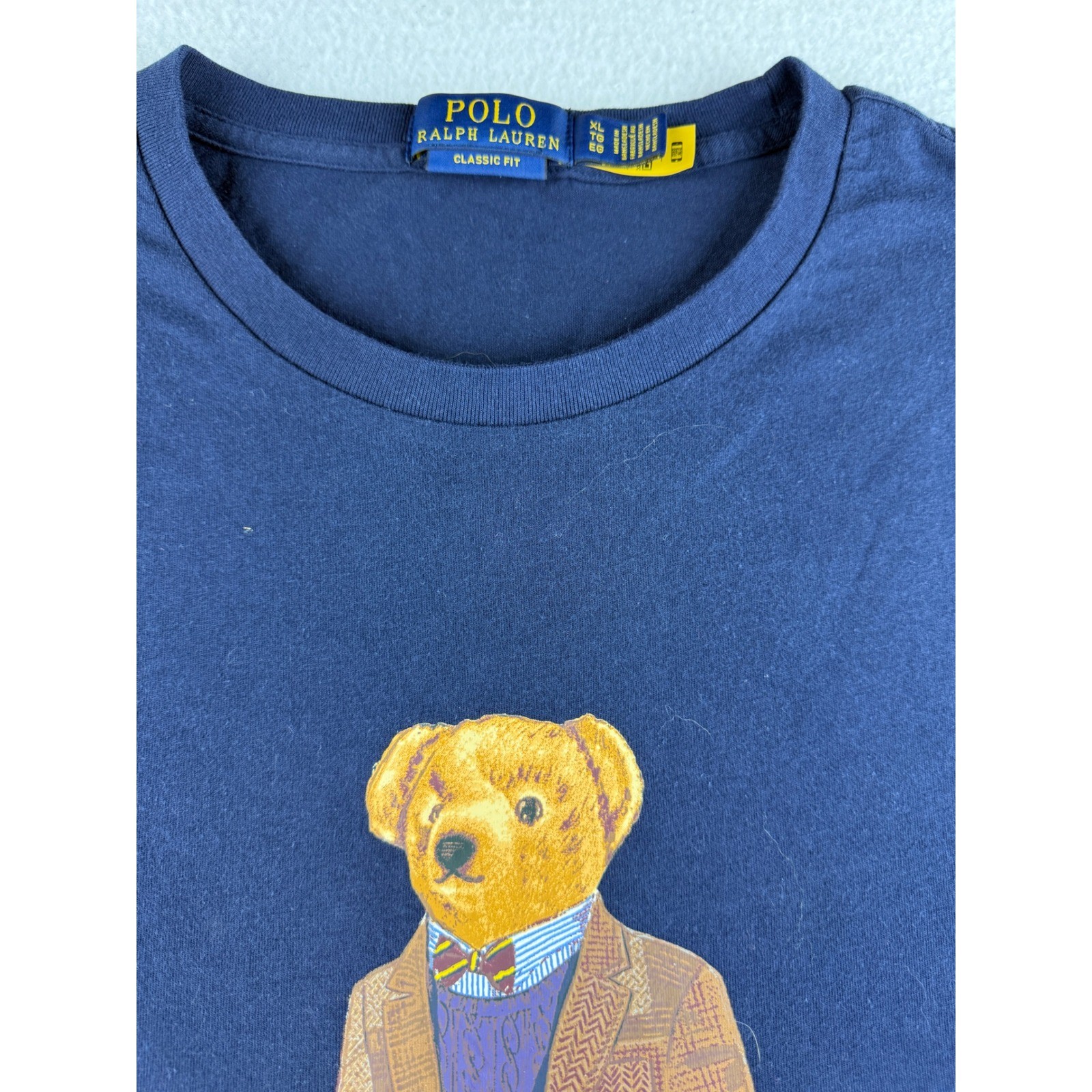 как выглядит Polo Ralph Lauren Mens Polo Bear Graphic T-Shirt Navy Blue Classic Fit XL фото
