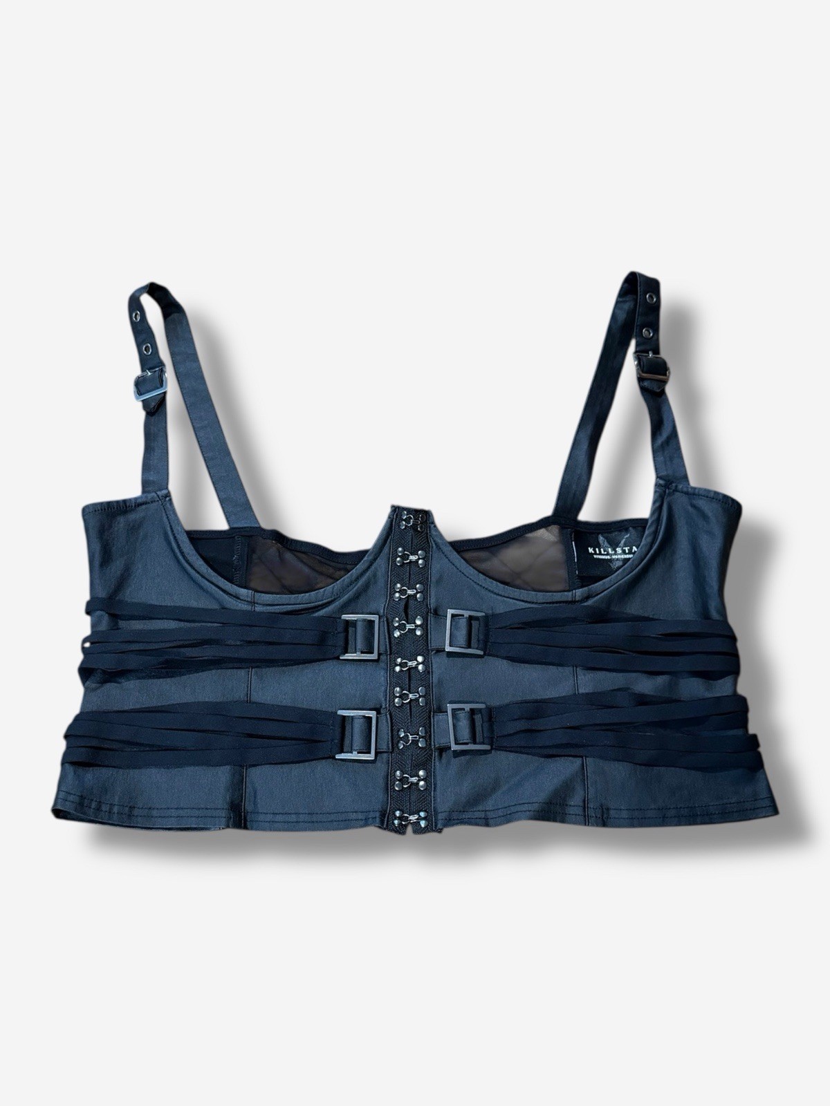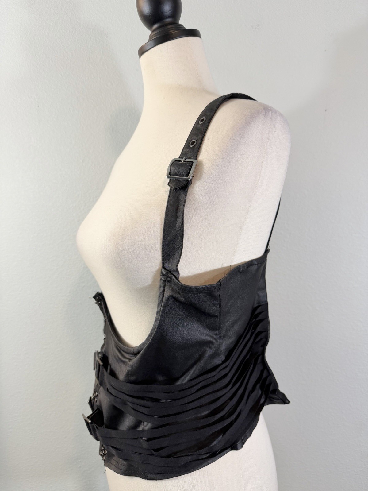 как выглядит Killstar Atacama s Void Black Faux Leather Underbust Corset 3XL Strap Details фото