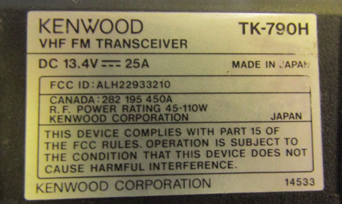 Kenwood TK-790H 148-174 MHz VHF 110 Watt Remote Head Two Way Radio w Mic