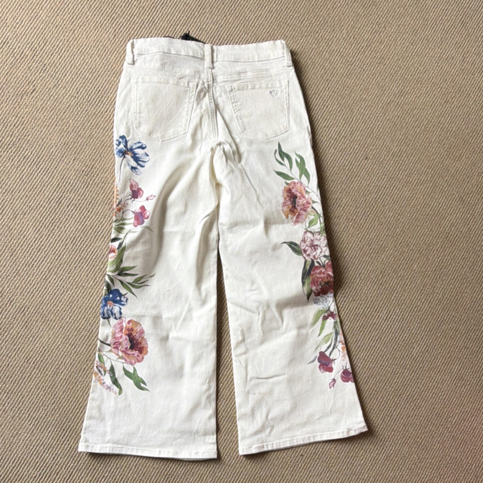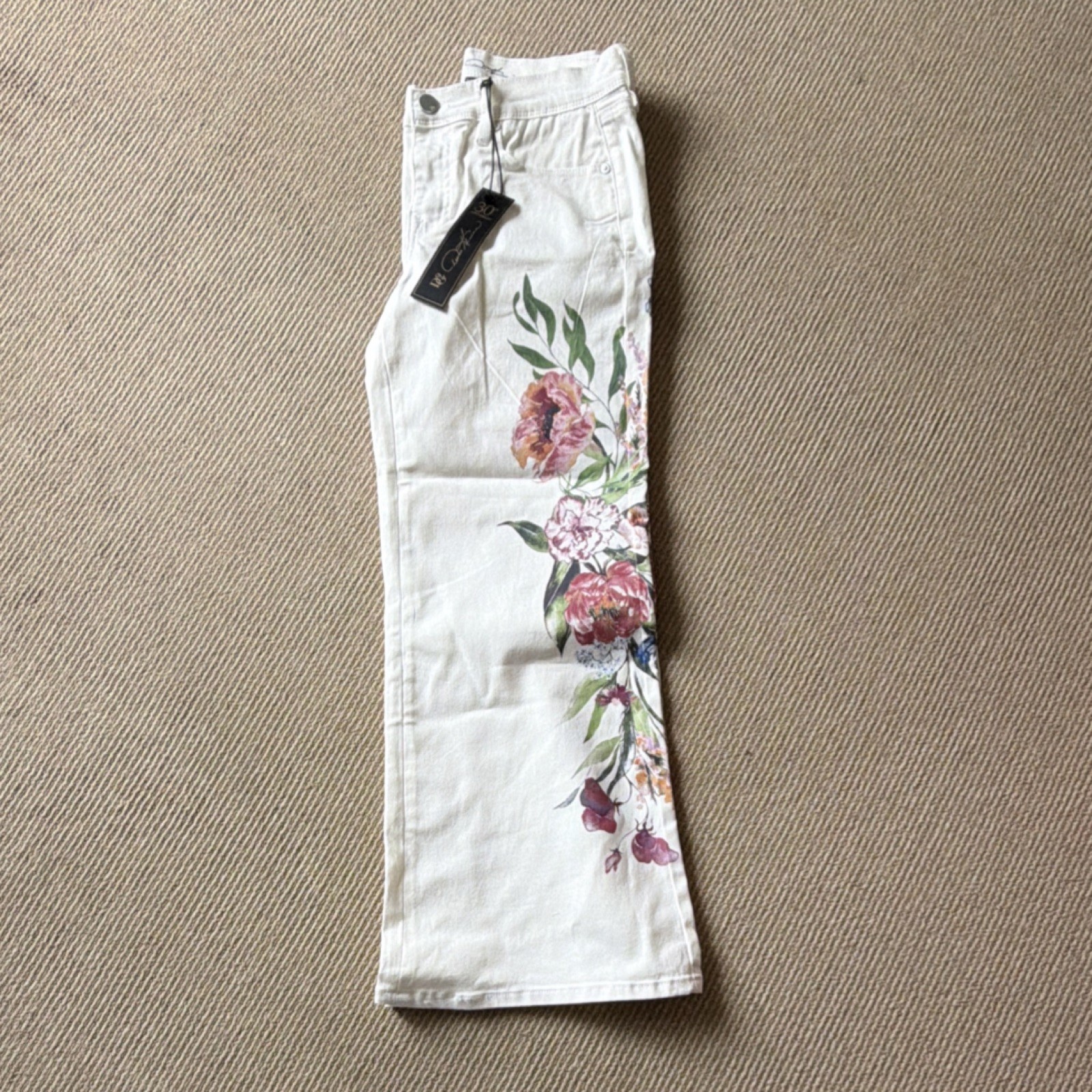 как выглядит Diane Gilman DG2 Floral Print White Flared Denim Jeans Cotton Multicolor Women фото