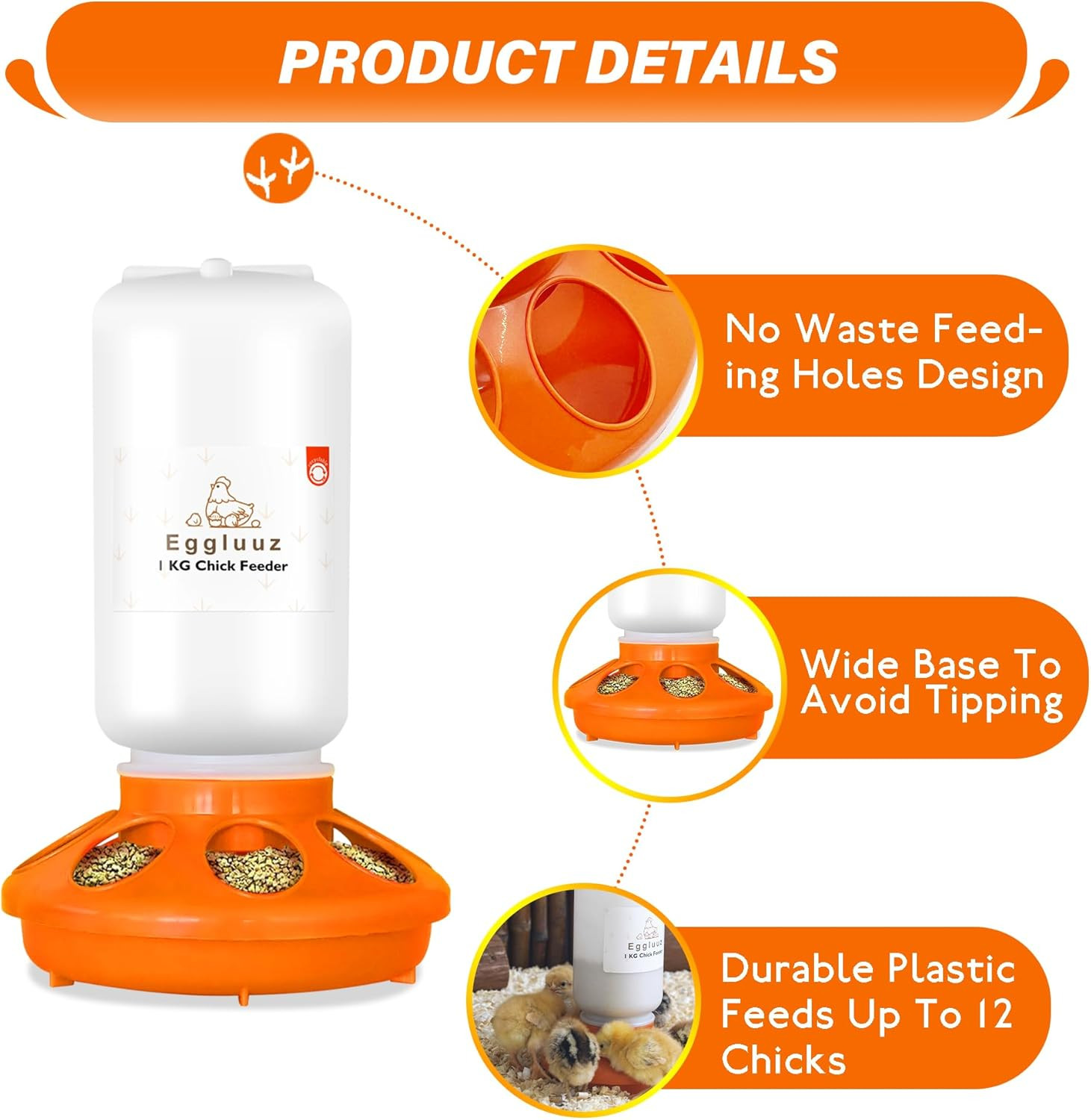 Chick Feeder and Waterer Kit Automatic Chicken Feeder and Waterer Set, 1L Chick