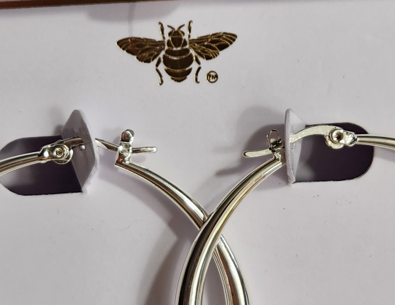 как выглядит BEE Logo Classic Silver Tone Hoop Earrings NIB Giftable фото