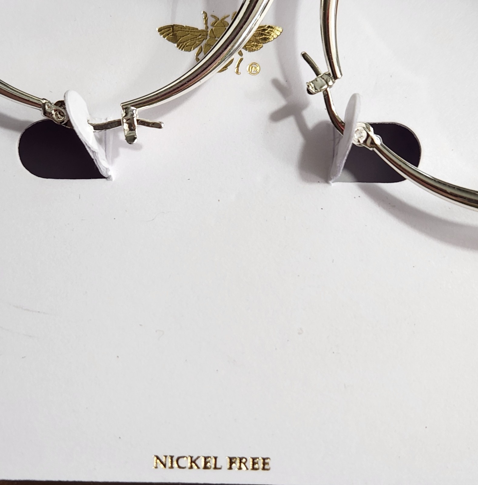 BEE Logo Classic Silver Tone Hoop Earrings NIB Giftable