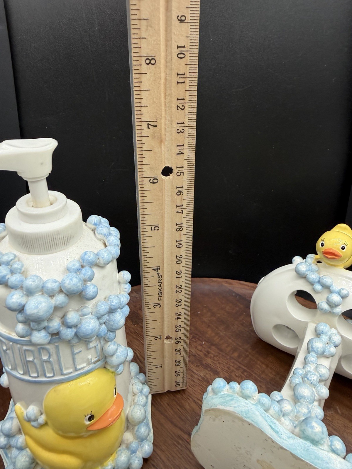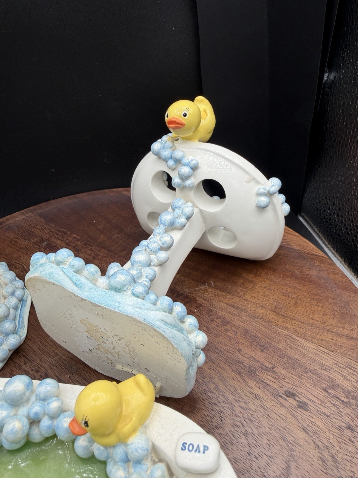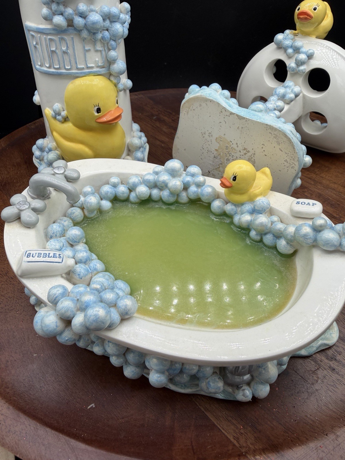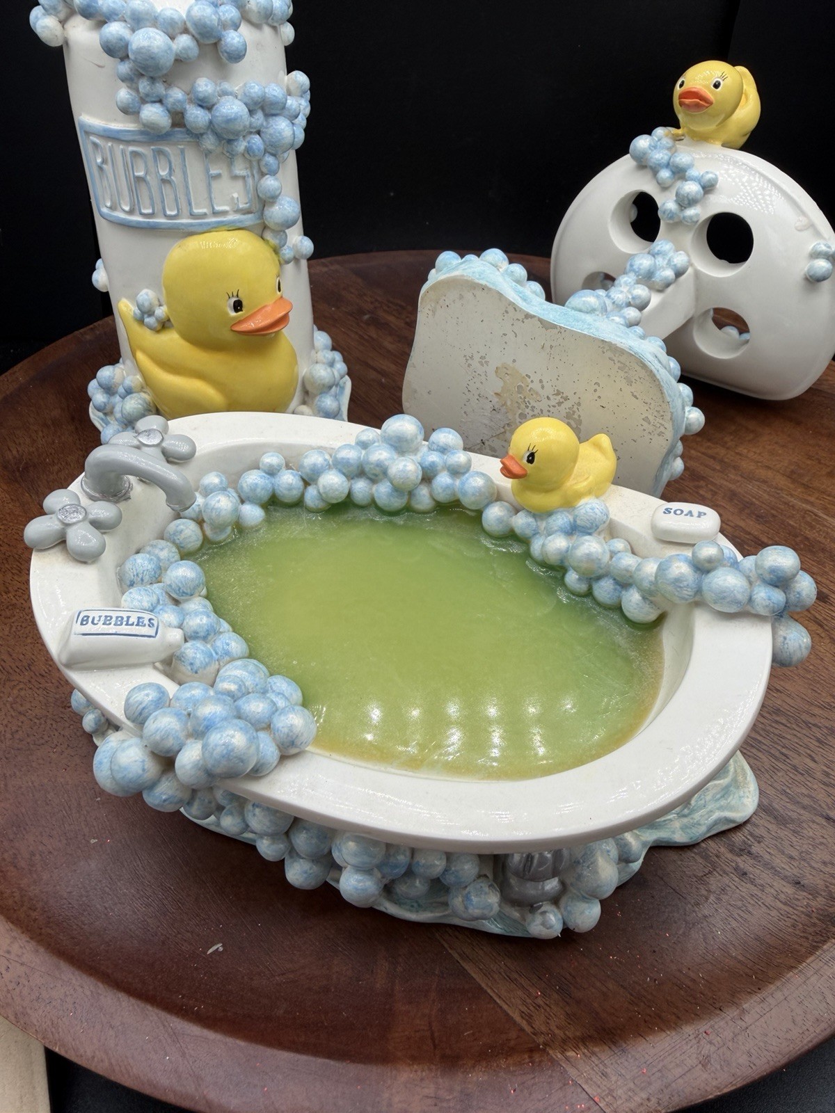 CUTE RARE 3 Piece Rubber Duck Bubbles VTG Bathroom Set Soap Toothbrush Blue