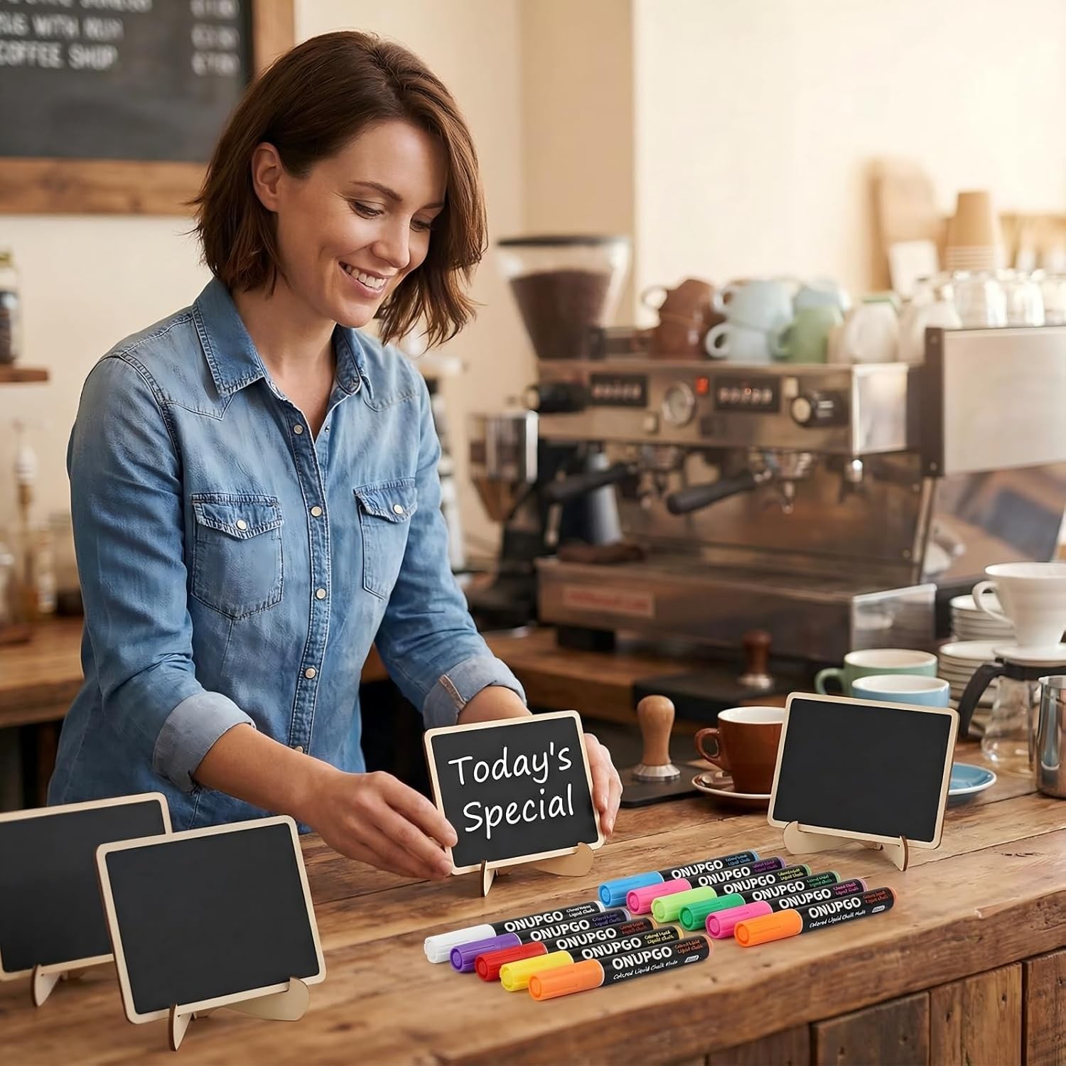 как выглядит Mini Chalkboard Signs 20 Pack Small Chalkboard Labels Table Signs W/ Easel Stand фото