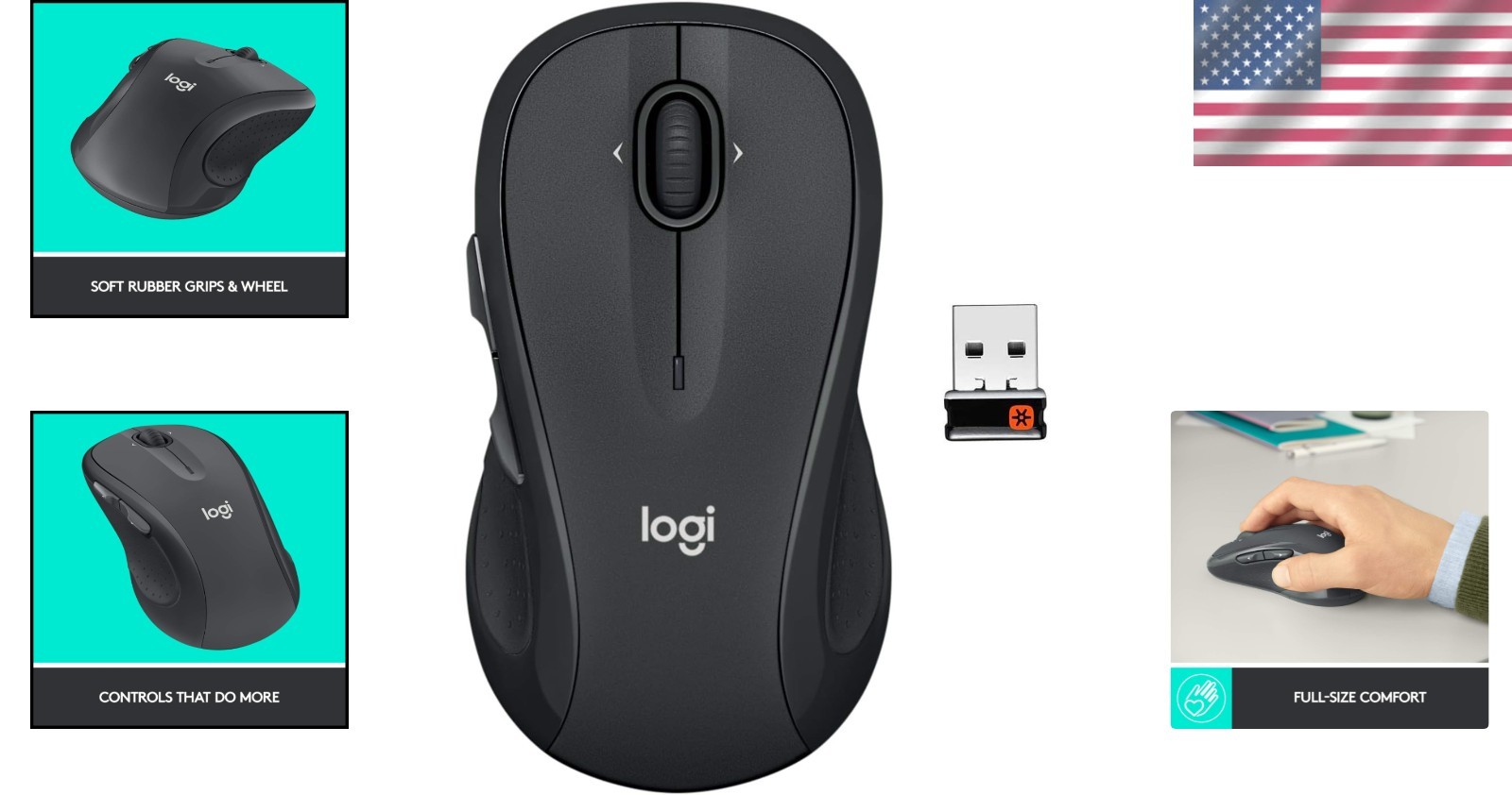 Logitech M510 Wireless Mouse - Ergonomic Design 2.4 GHz Unifying Receiver
