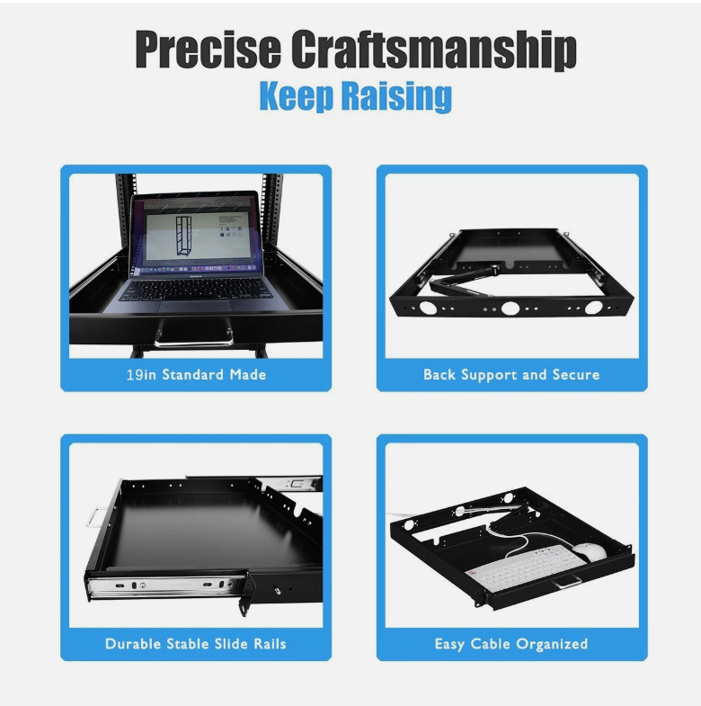 1U Rack Mount Sliding Keyboard Drawer 19 Keyboard Tray