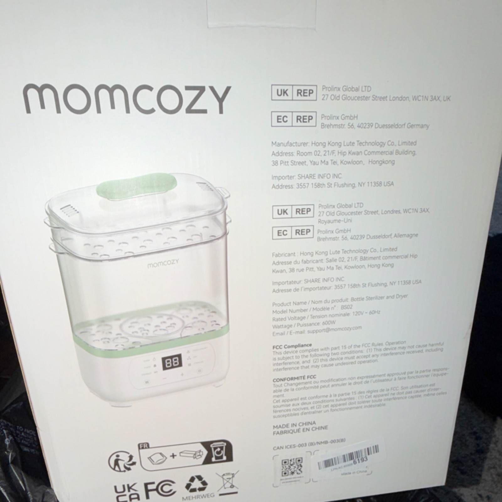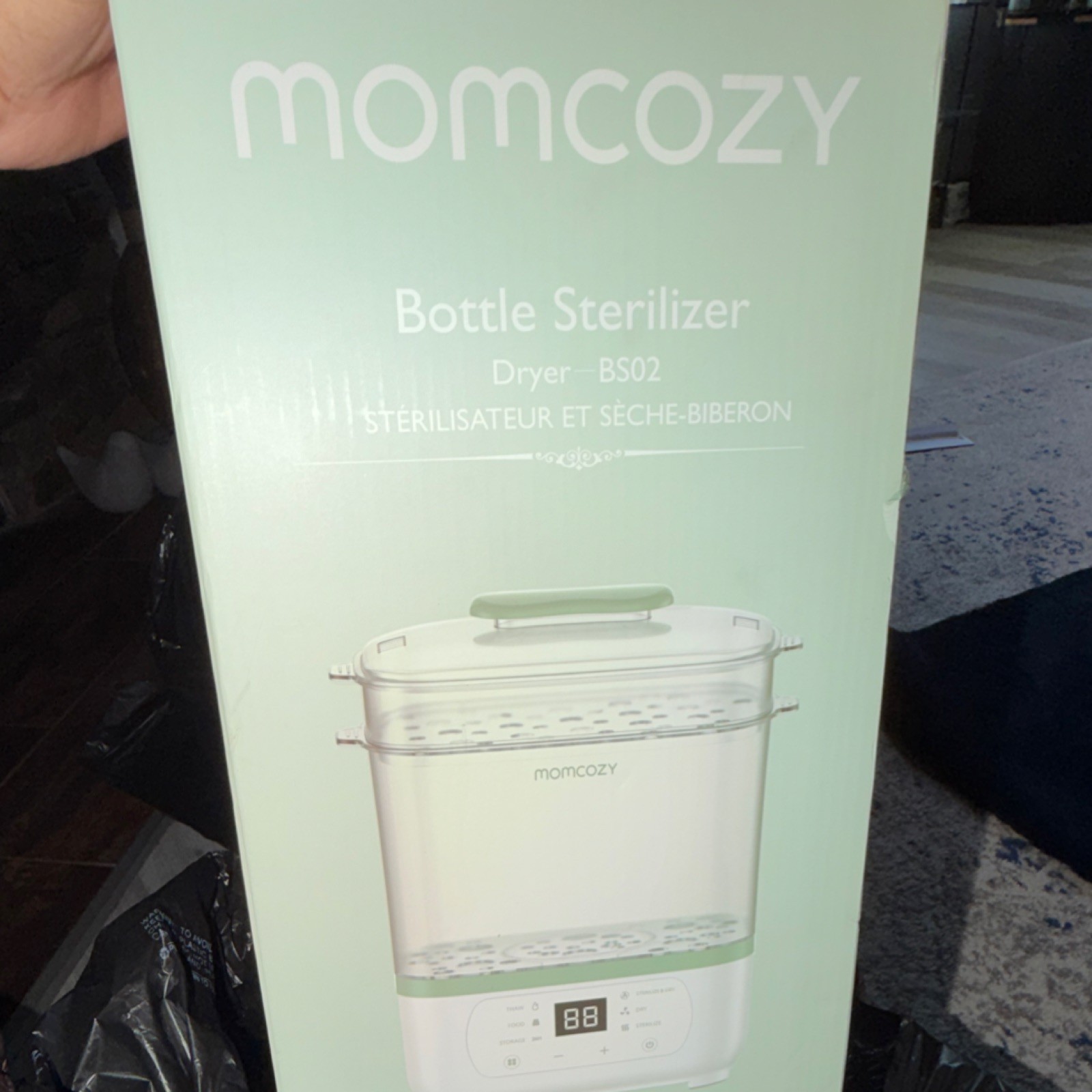как выглядит Momcozy Electric Bottle Sterilizer Dryer BS02 Removable Tray White Green фото