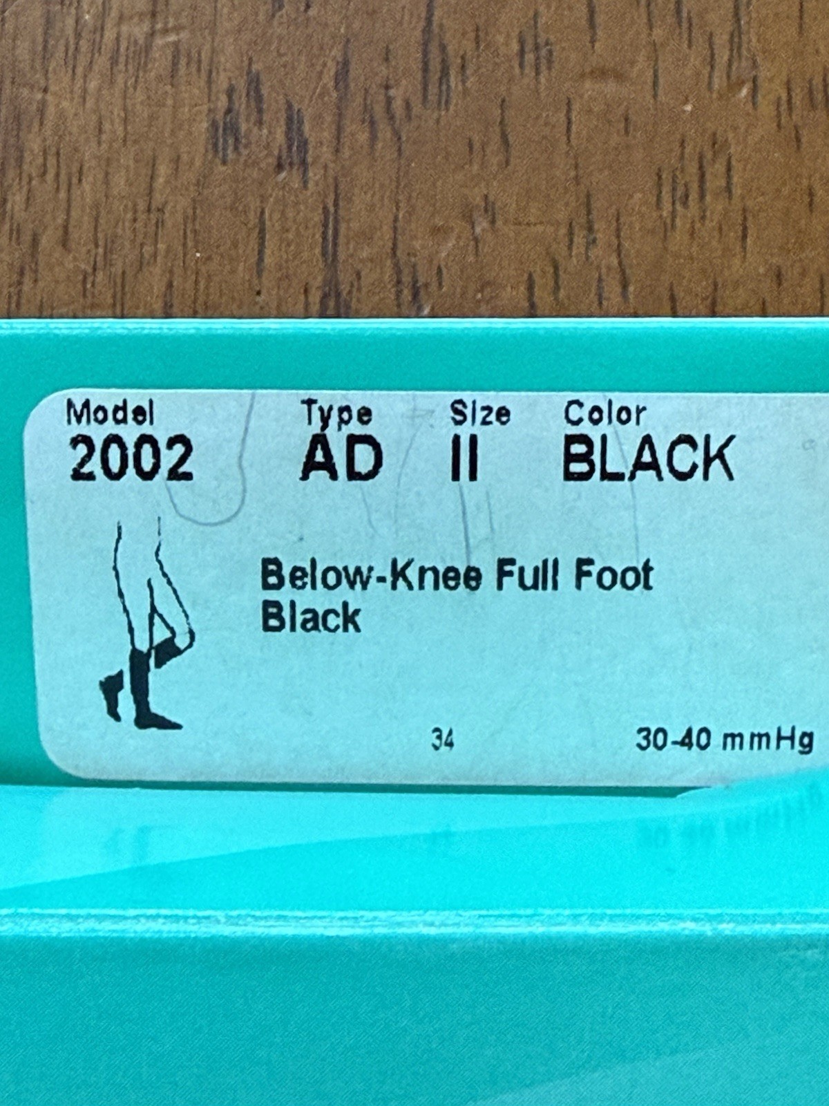 Juzo Dynamic 2002 AD Size II Black Below Knee Full Foot 30-40mmhg