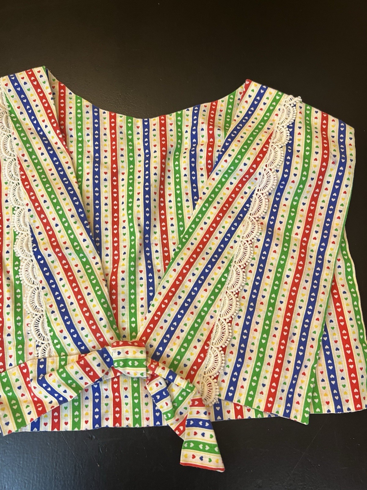 Vintage Green Red Blue Stripe Hearts Lace Sailor Collar Removable Clowncore
