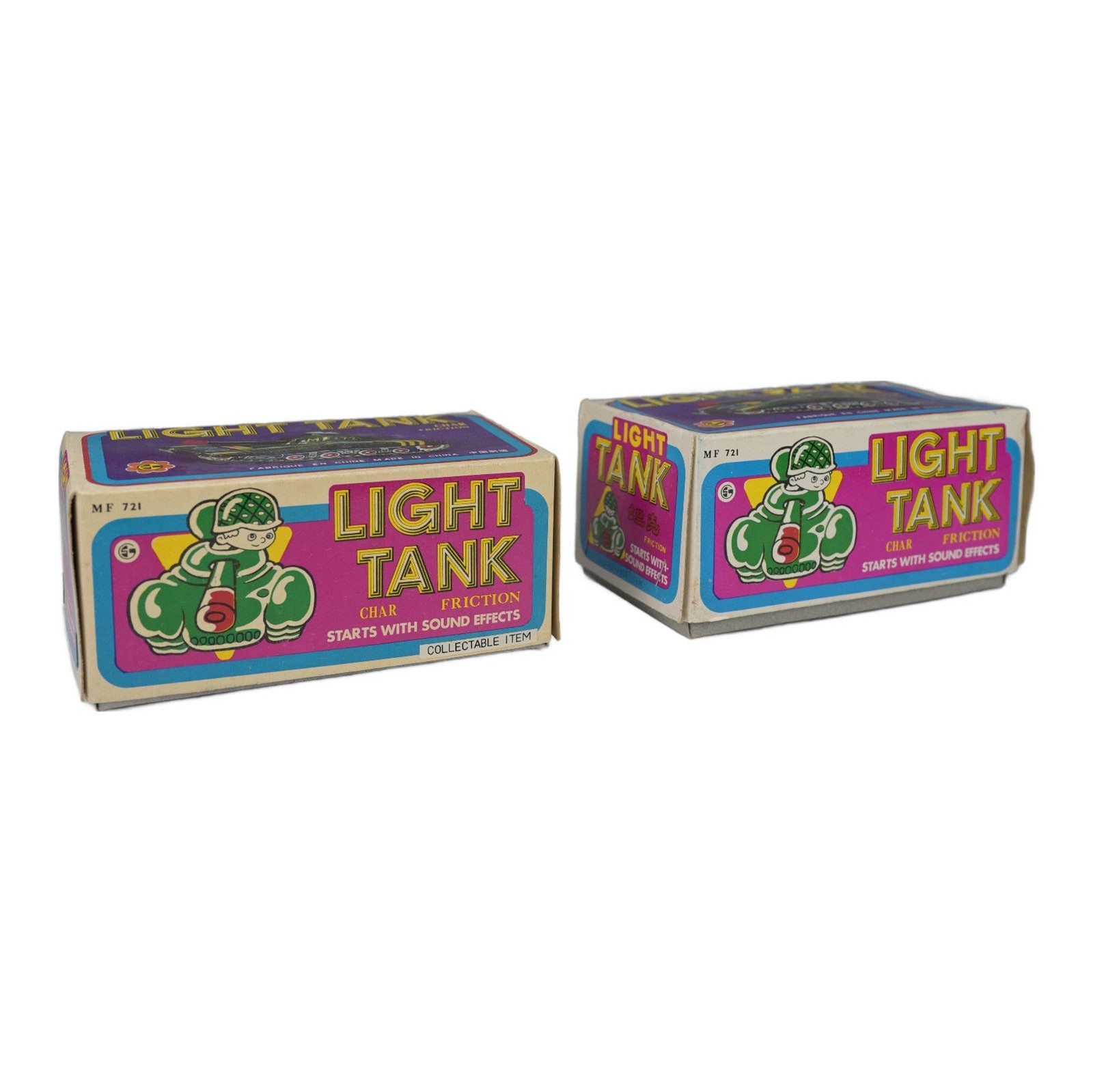 Pair of Vintage Chinese Tin Friction Tanks MF 721 with Boxes