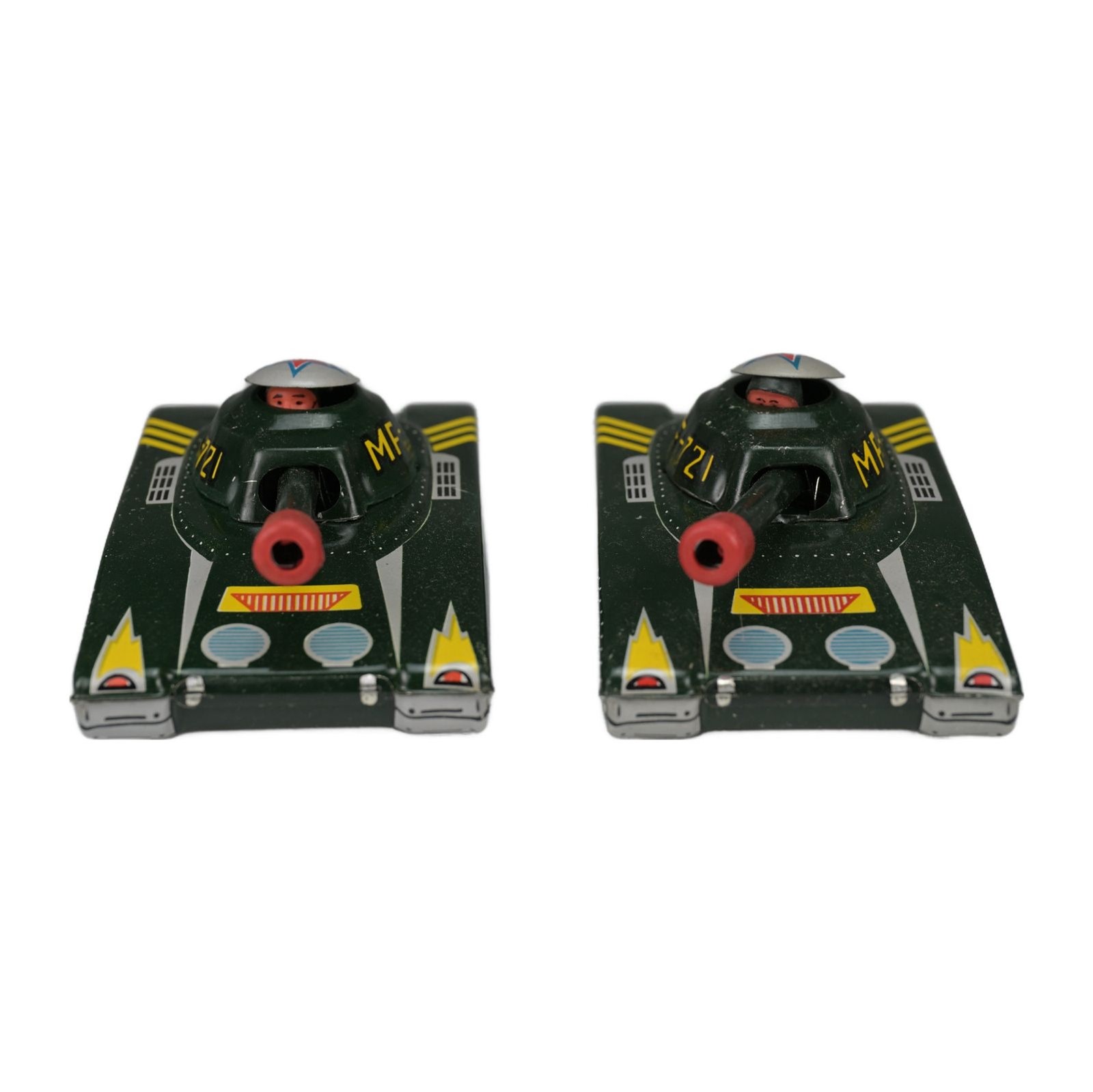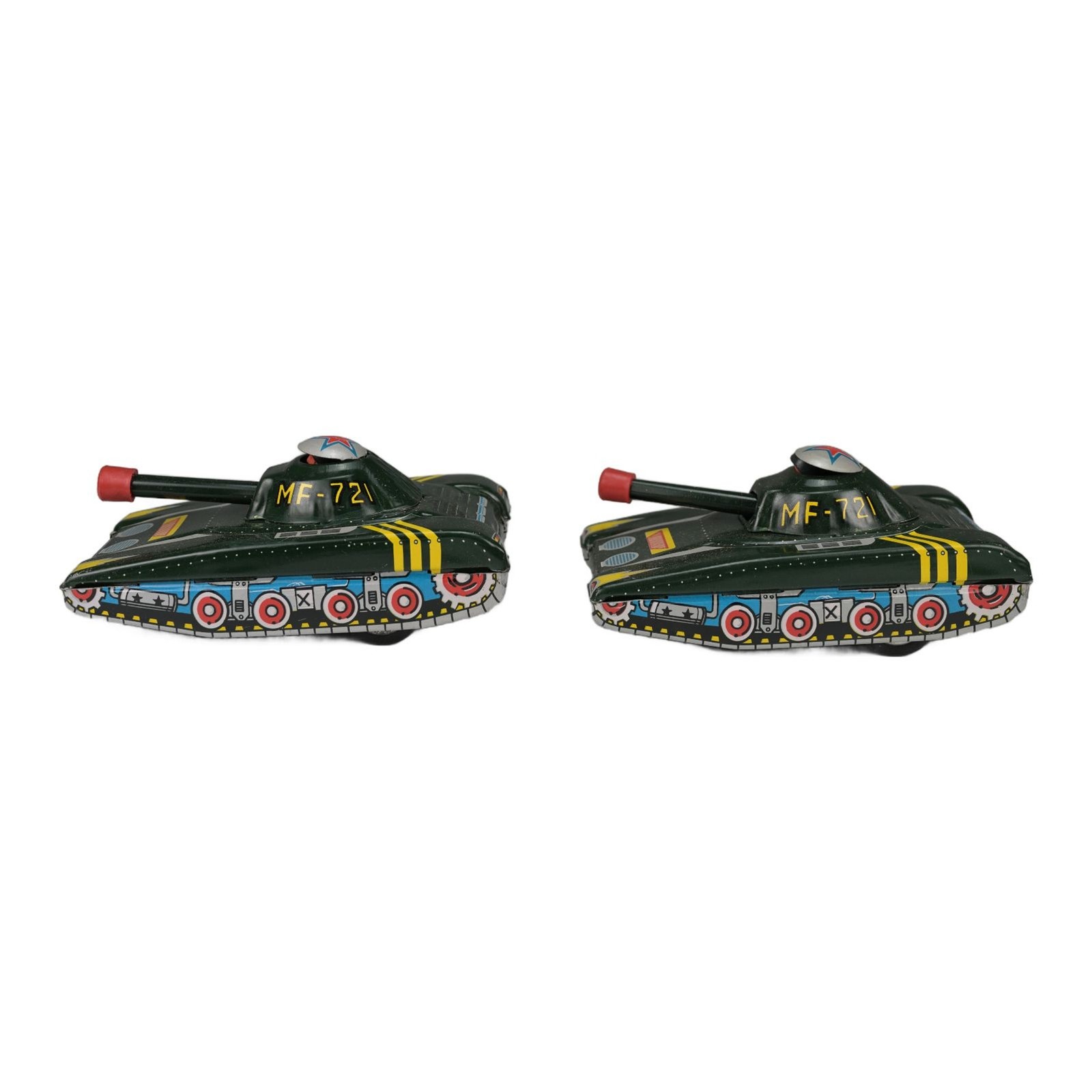 как выглядит Pair of Vintage Chinese Tin Friction Tanks MF 721 with Boxes фото