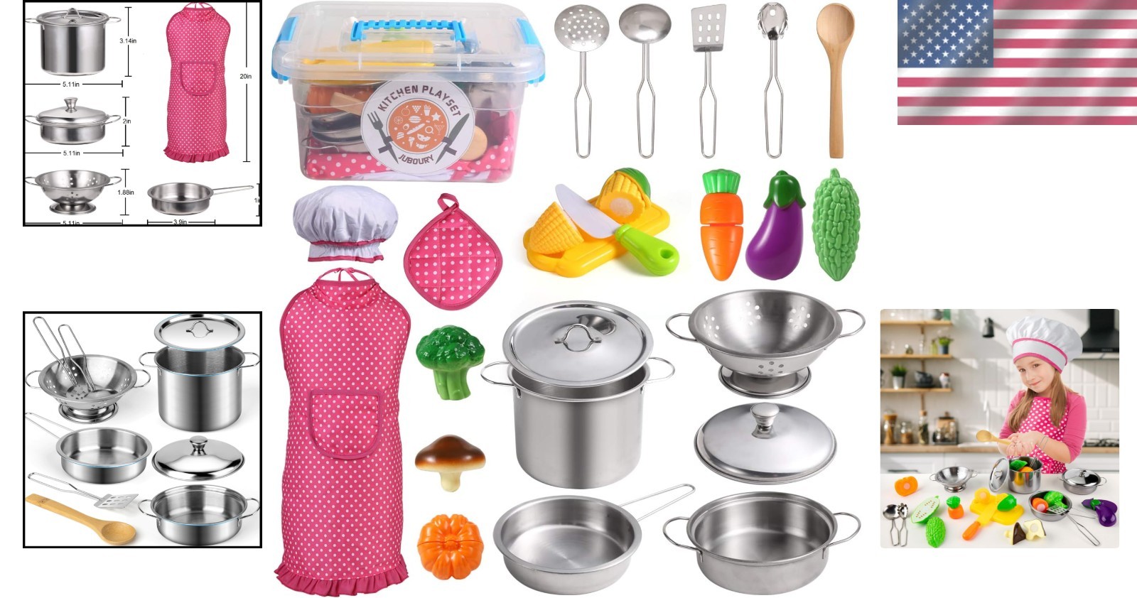 как выглядит Complete Kitchen Pretend Play Set for Toddlers with Colorful Utensils Apron фото