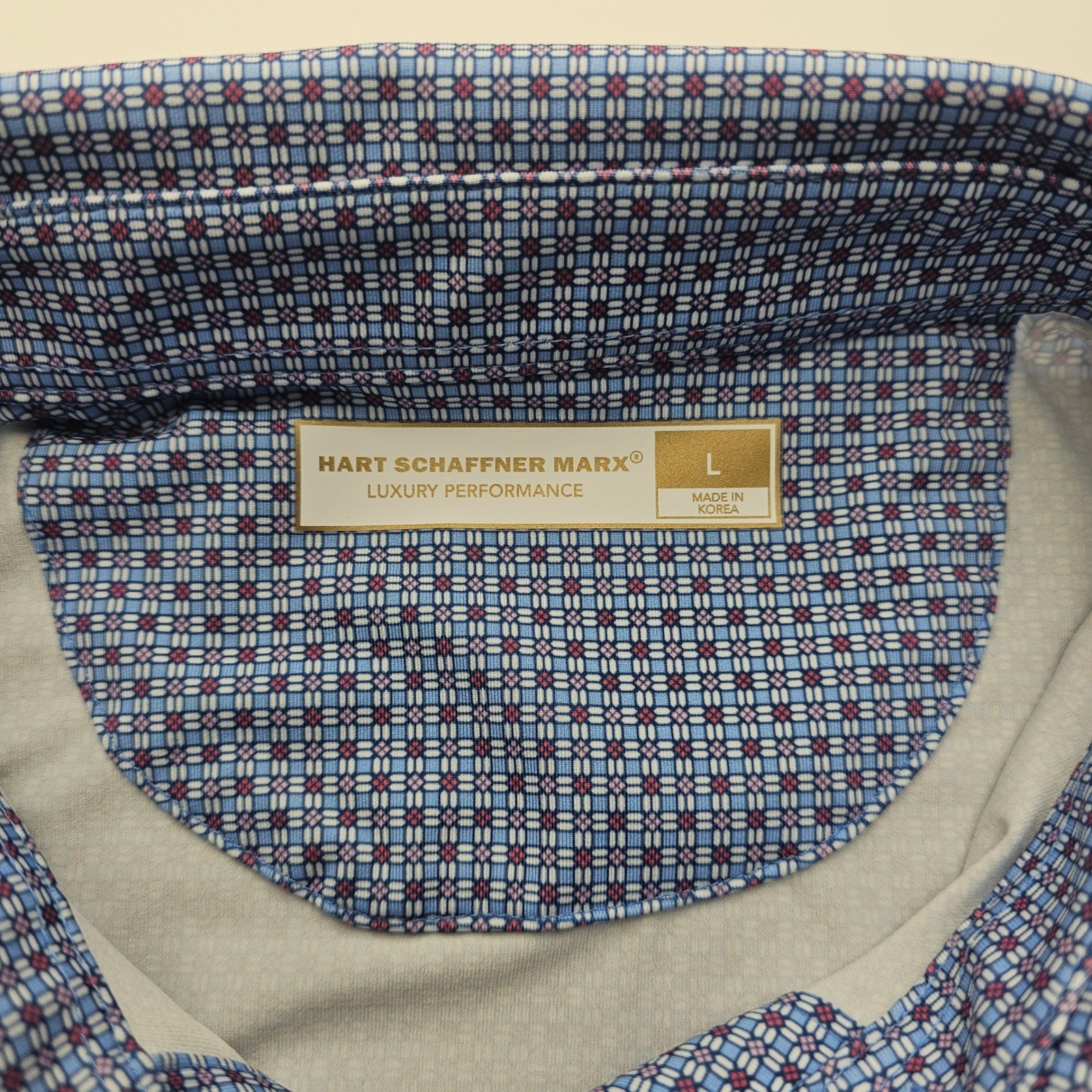 Hart Schaffner Marx Mens Luxury Performance Polo Shirt Blue Geometric Print L