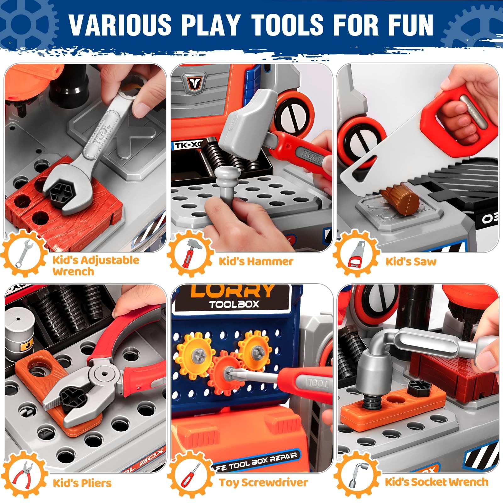Kids Tool Bench with Electric Drill and Power Miter Saw, Construction Workben...