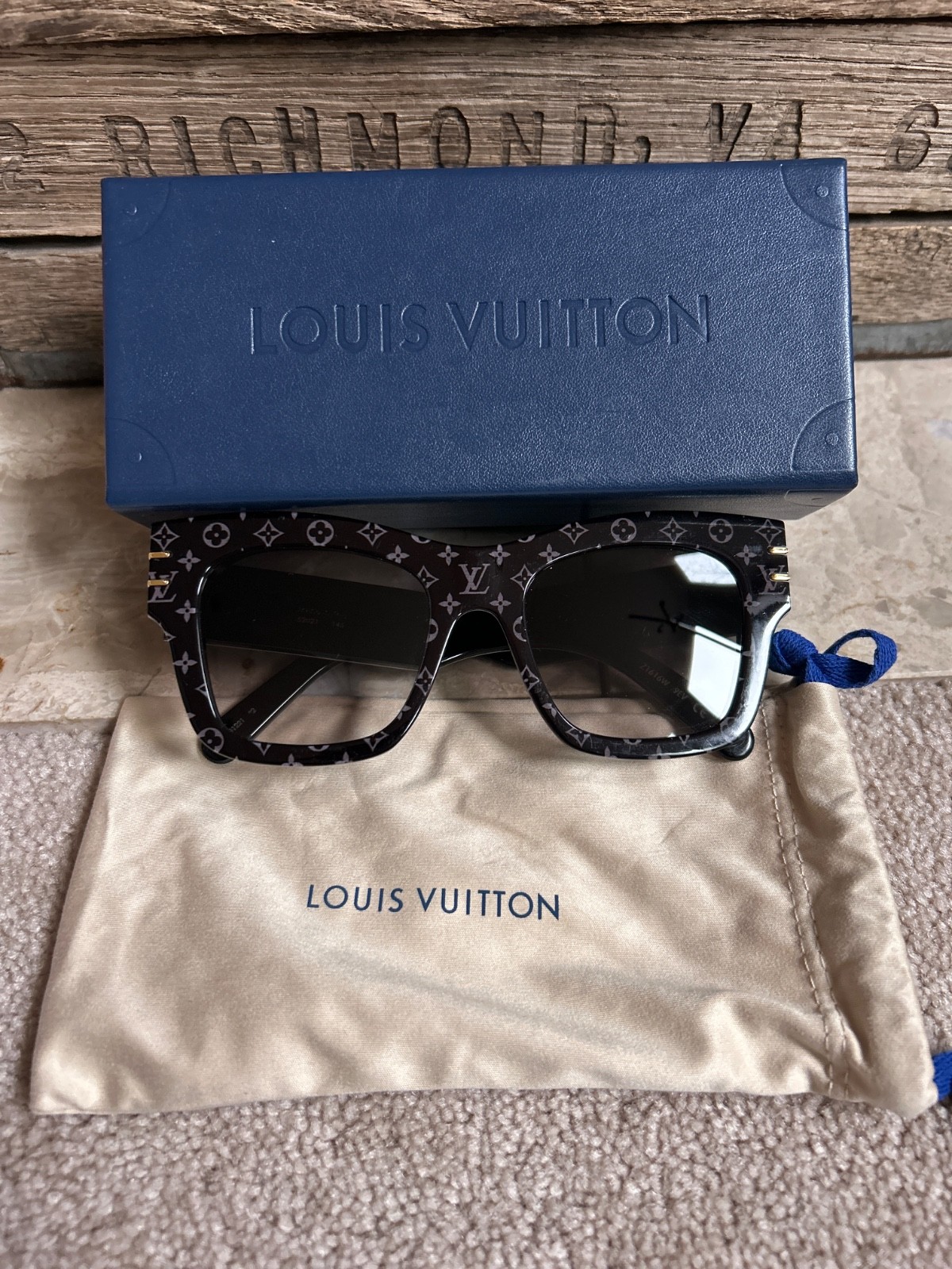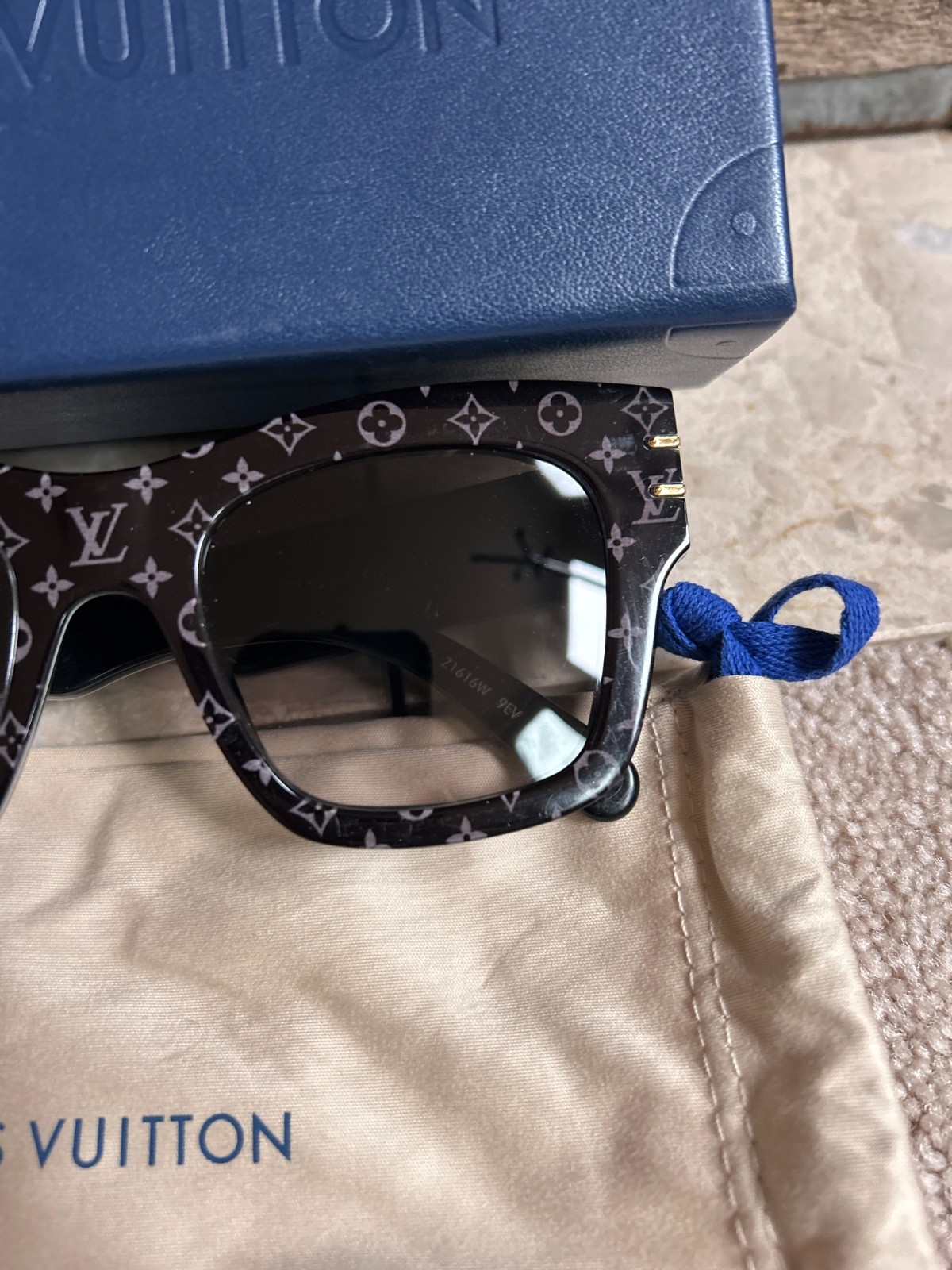 как выглядит 765 LOUIS VUITTON "Blade" tinted square sunglasses - Black - 145mm - Z1616W фото