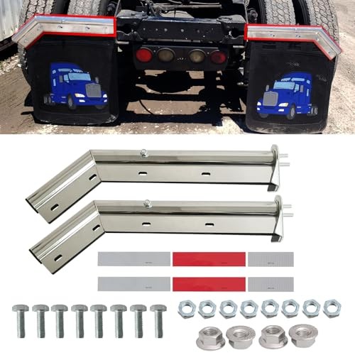 Angled Spring Loaded Mud Flap Hanger Bracket Set 1-1/8 Bolt Spacing Chrome