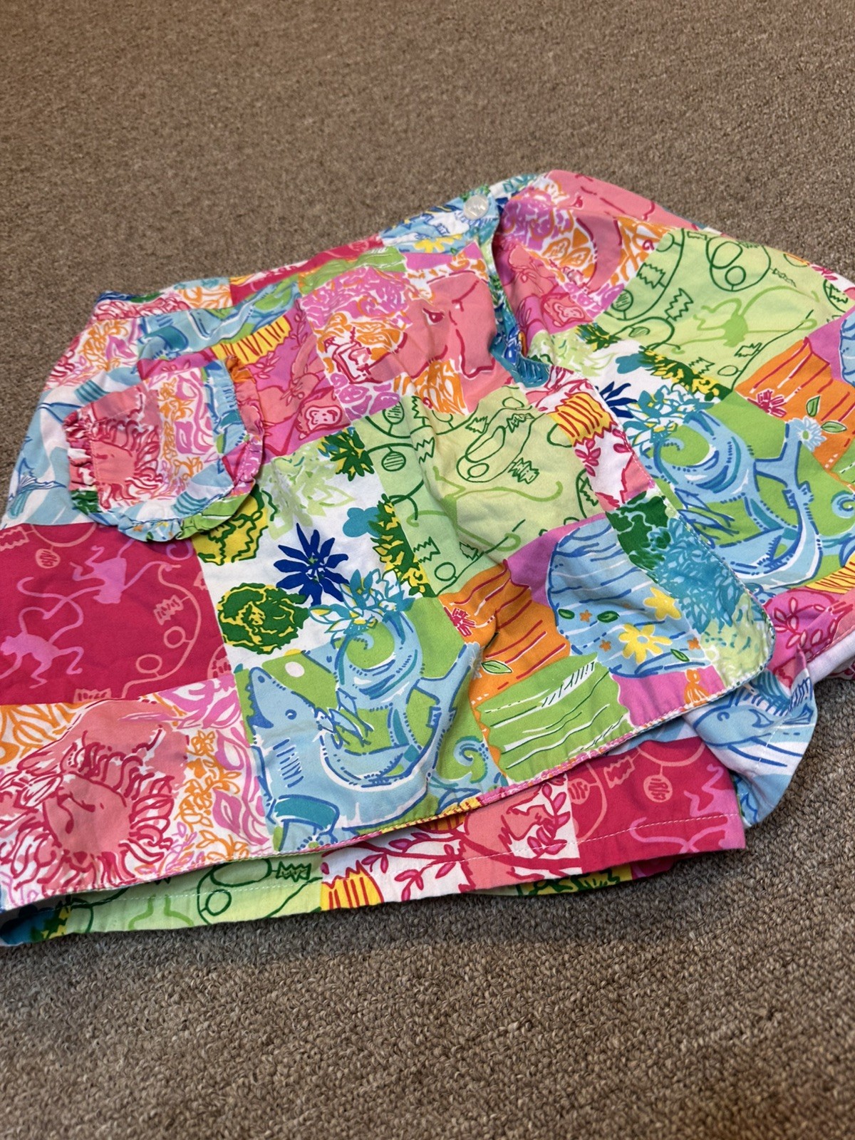как выглядит Lilly Pulitzer Girls Patchwork Pink Green Skort Short 14 Vintage фото