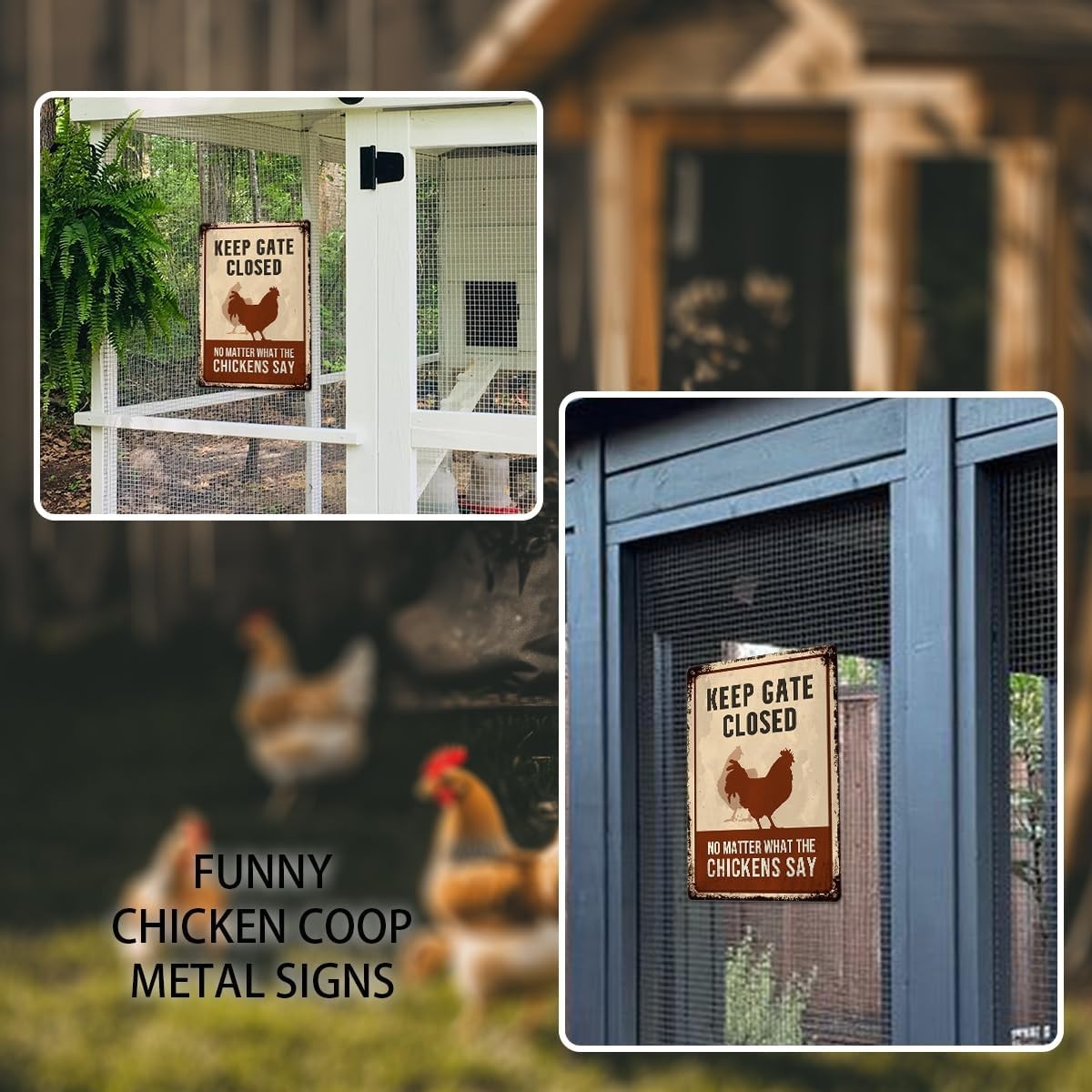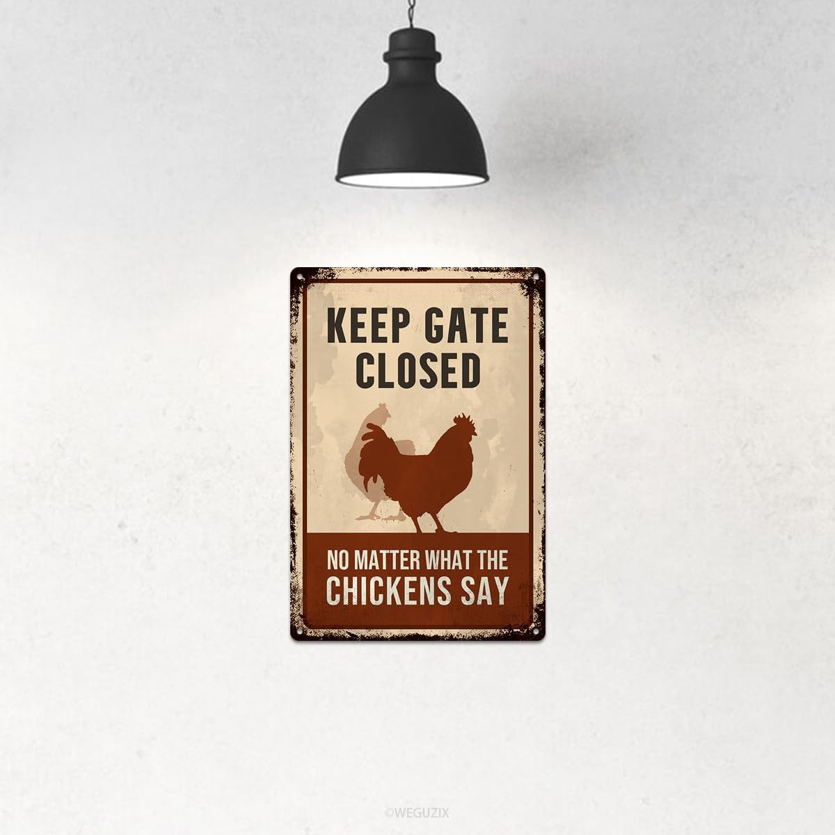 Funny Chicken Coop Tin Metal Signs Home D cor Keep Gate Closed No Matter What Th