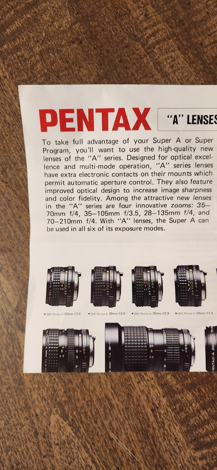 Vintage 80s 35mm Pentax Super Programmer Brochures Expandable Rubber Lens Hood