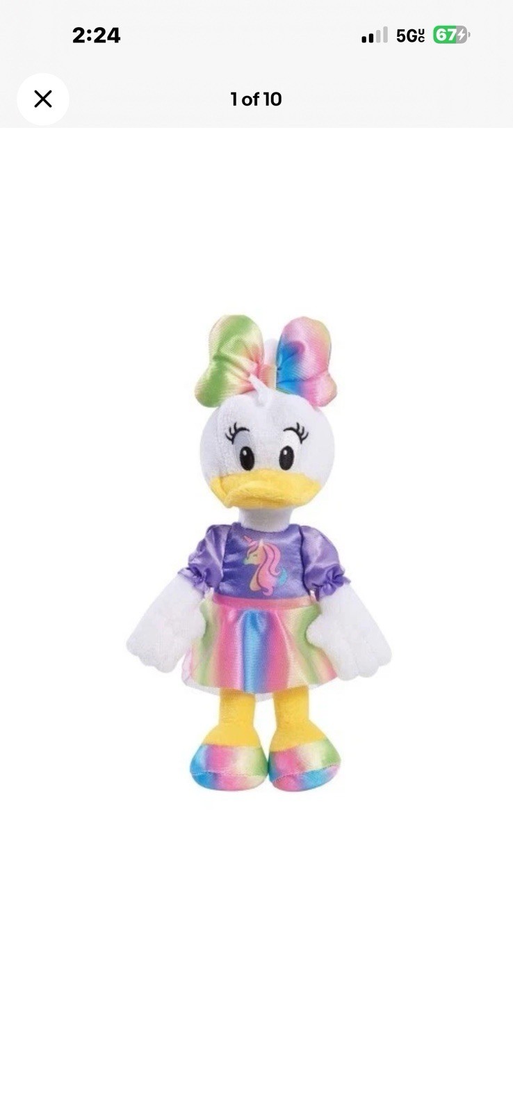 как выглядит Daisy Duck Plush Doll Rainbow Unicorn Dressed Disney Junior Just Play NWT фото