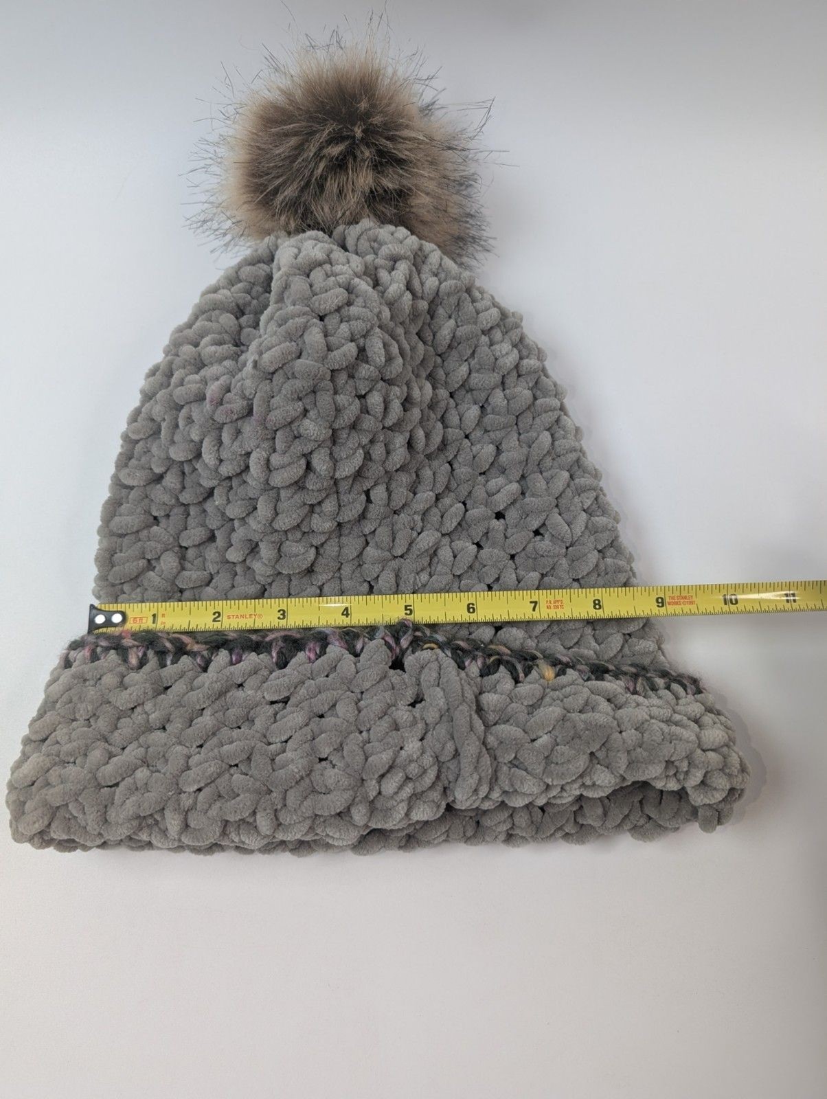 как выглядит Handmade Very Soft Chenile Chunky Knit Beanie Hat with Faux Fur Pom Pom фото