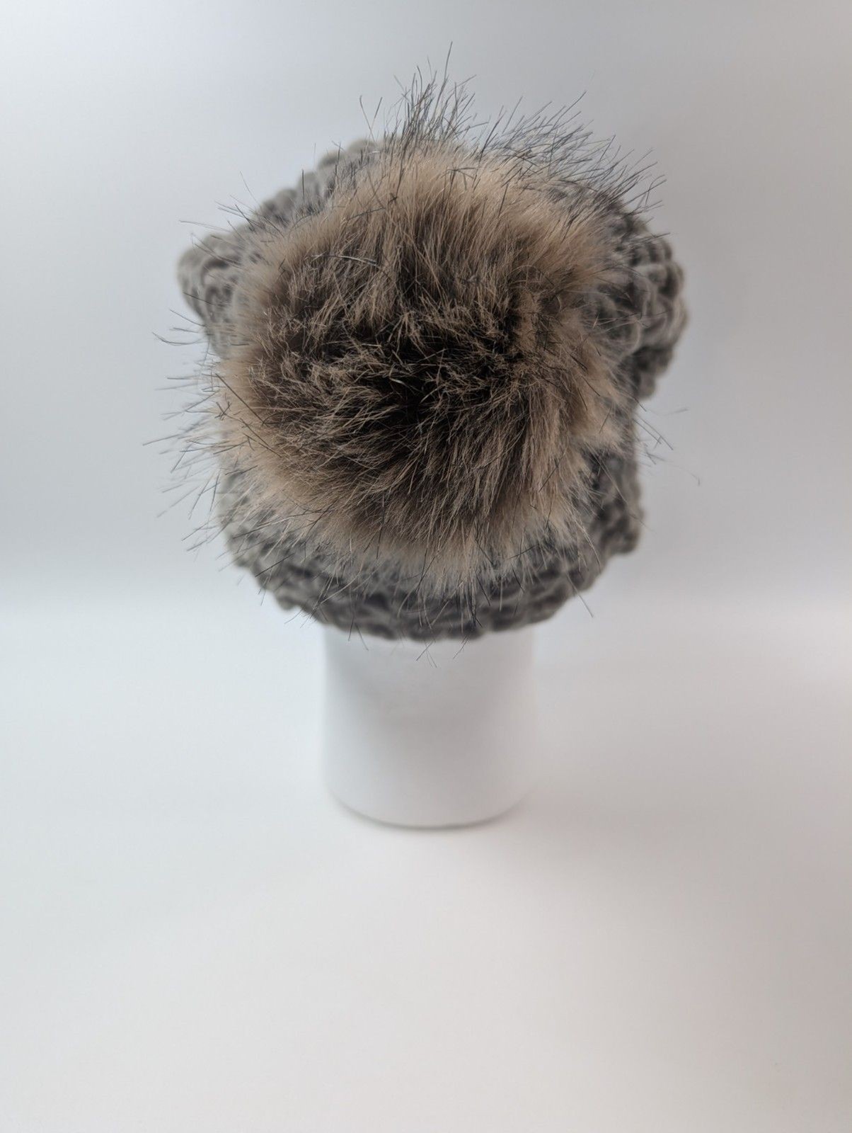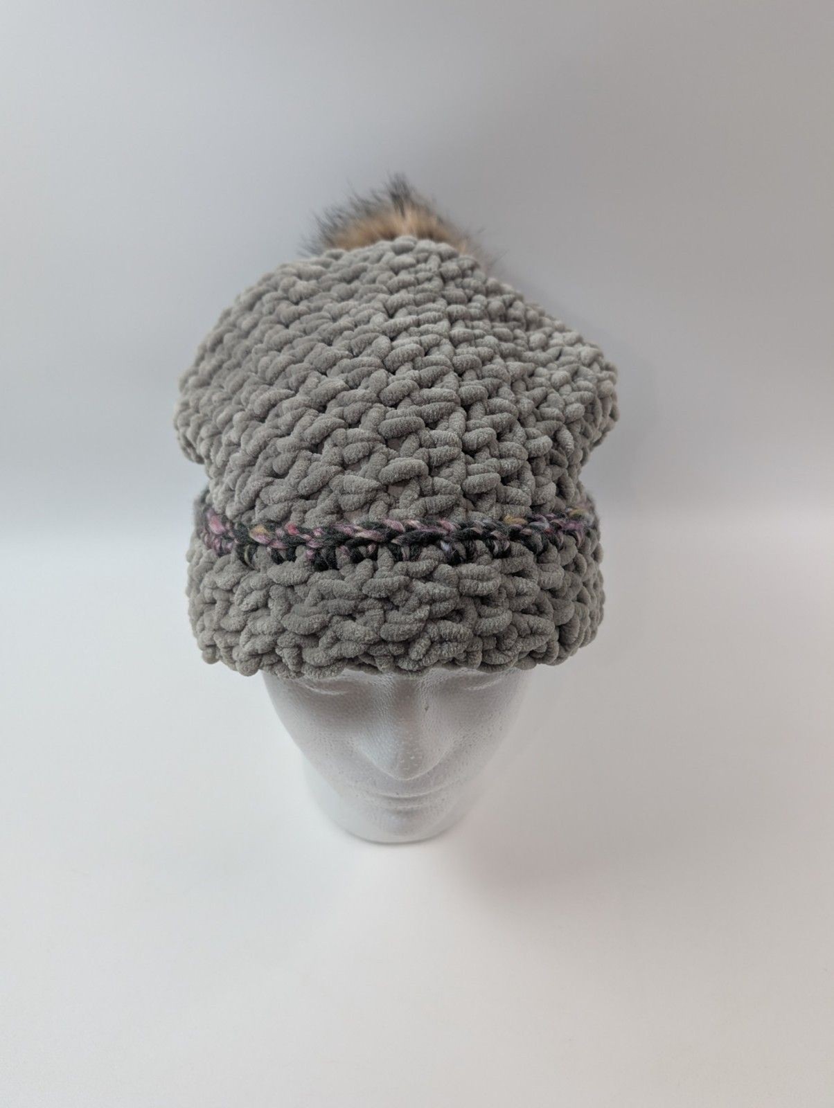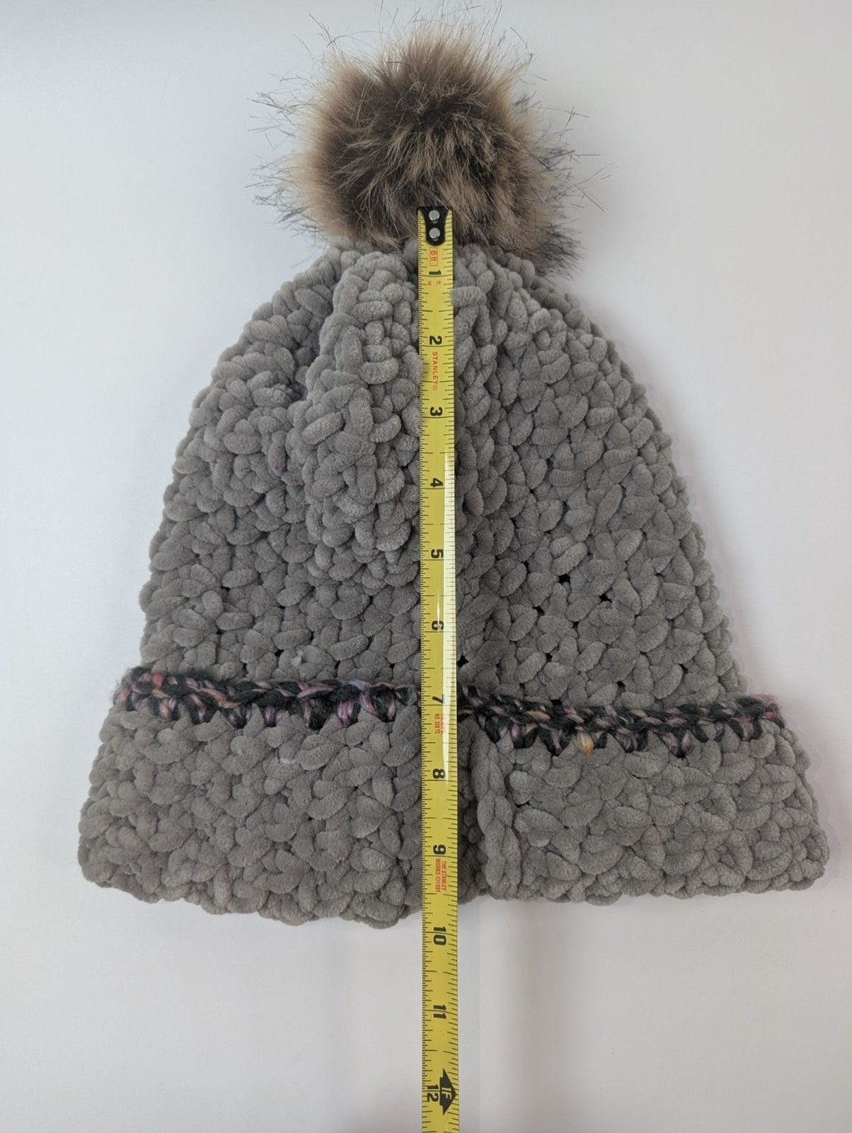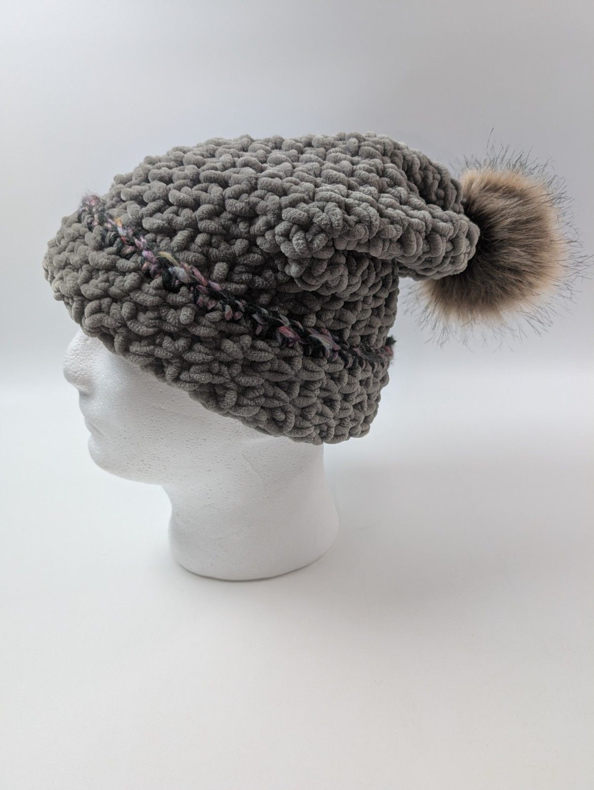 Handmade Very Soft Chenile Chunky Knit Beanie Hat with Faux Fur Pom Pom
