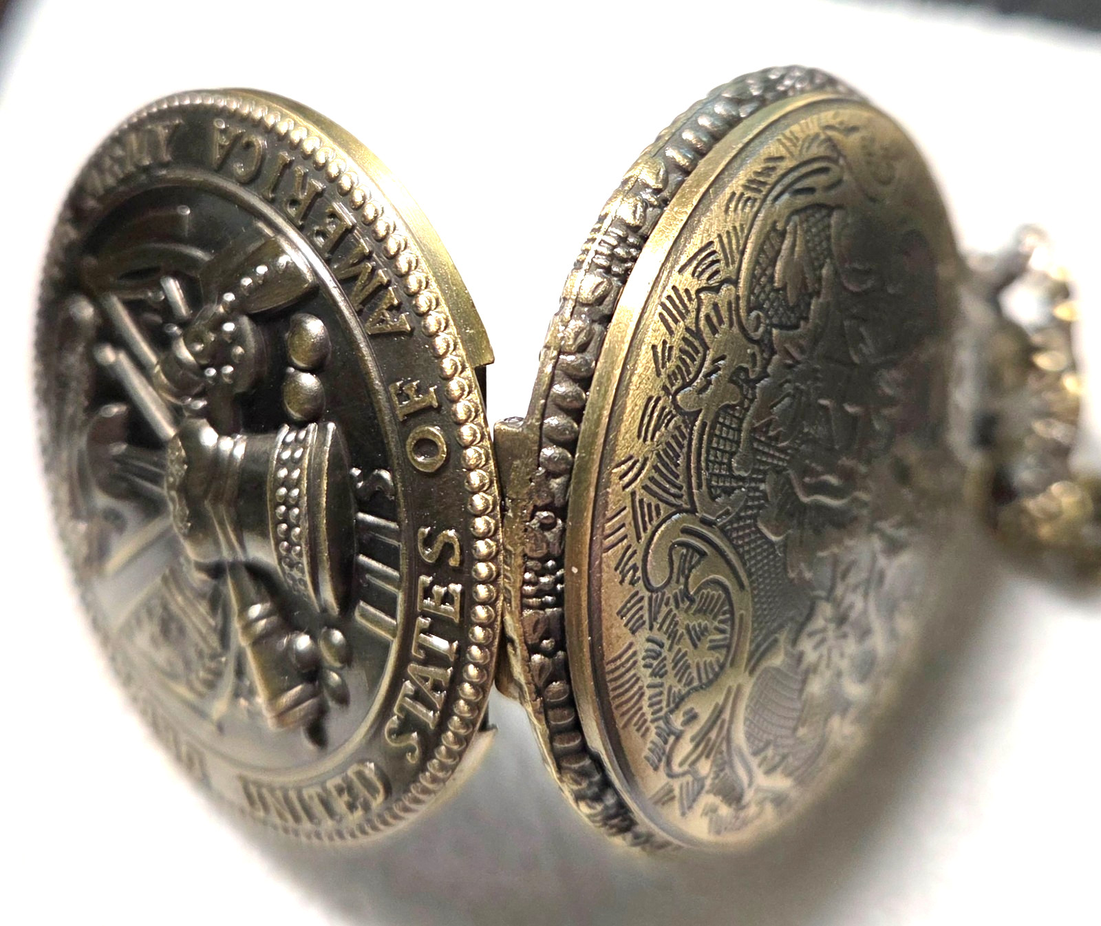 UNITED STATES ARMY POCKET WATCH BRONZE QUARTZ ANALOG 80cm CHAIN