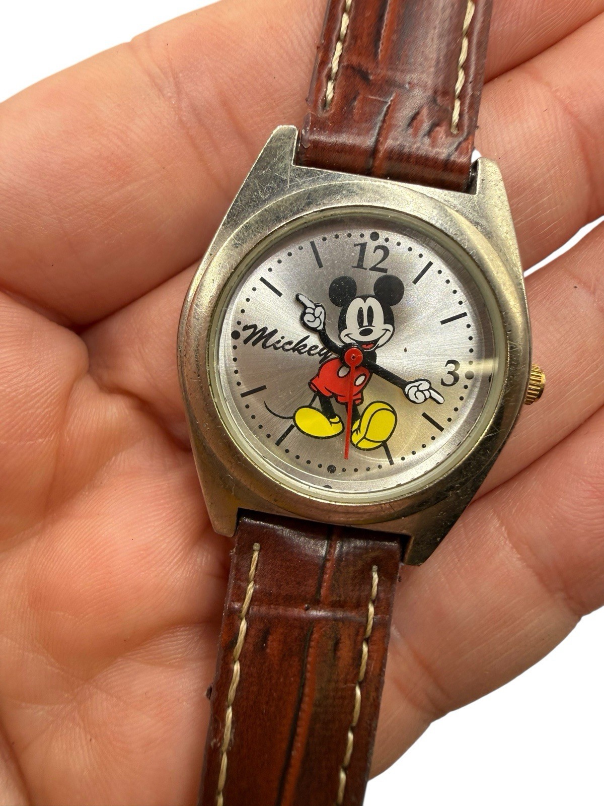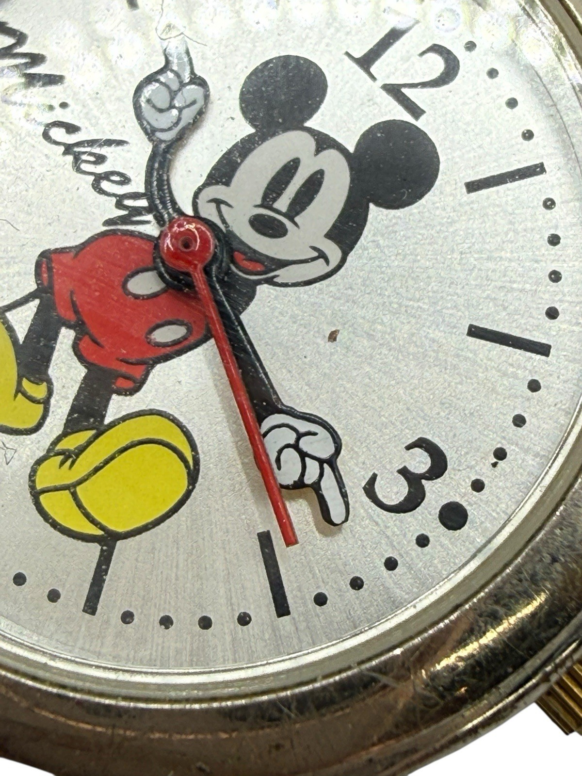 • Disney Mickey Mouse Watch Moving Hands Two Tone Red Leather Band New Battery