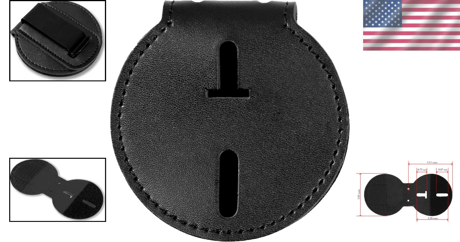 Black Cowhide Sheriff Badge Holder with Metal Clip Chain for ID Event Pass