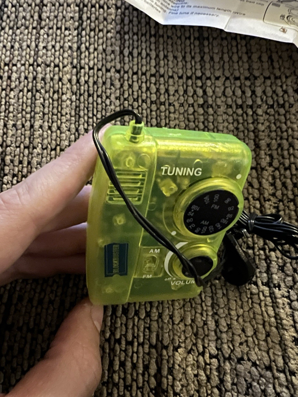 Blockbuster Video Yellow Clear Mini Pocket AM/FM Radio Headphone Jack