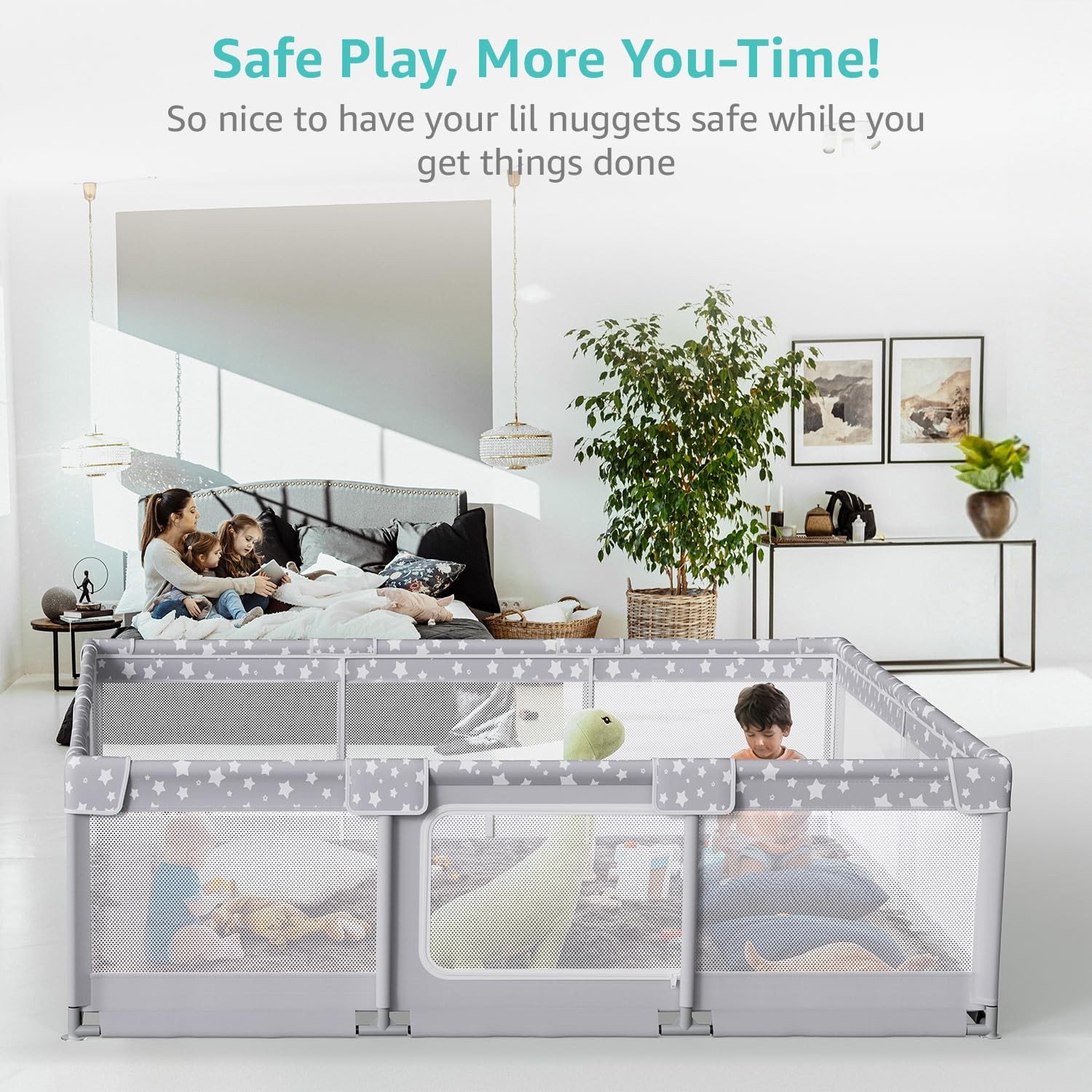 Large Baby Playpen for Babies and Toddlers - 70x59in Giant Play 59x70in, Gray