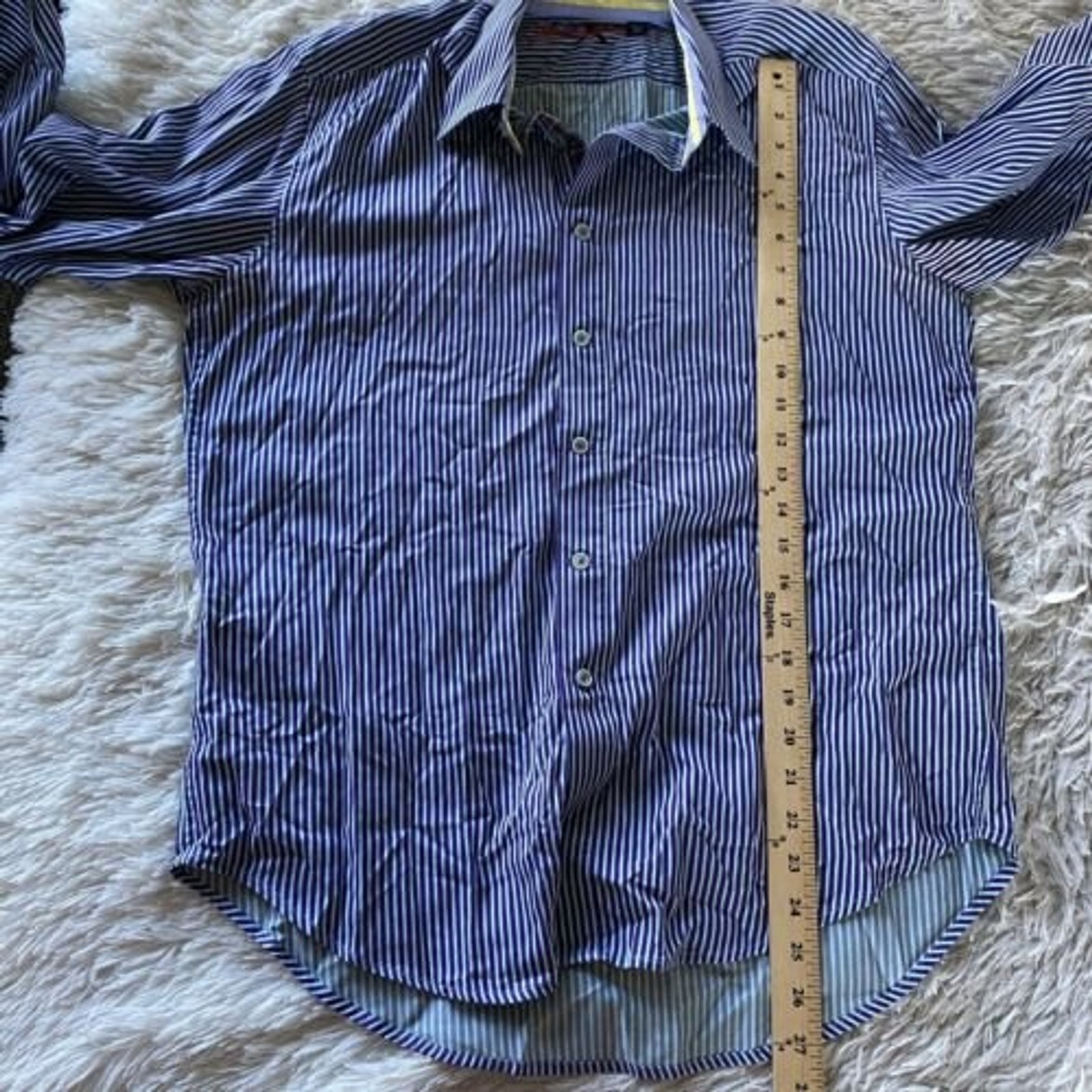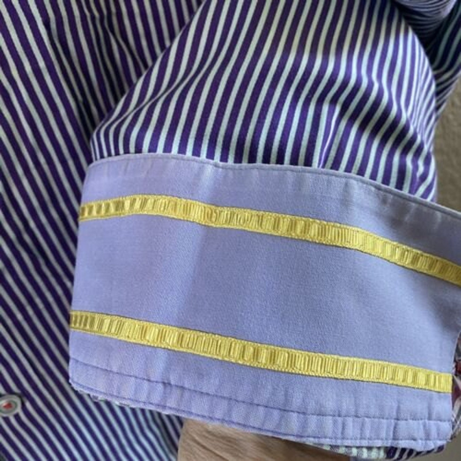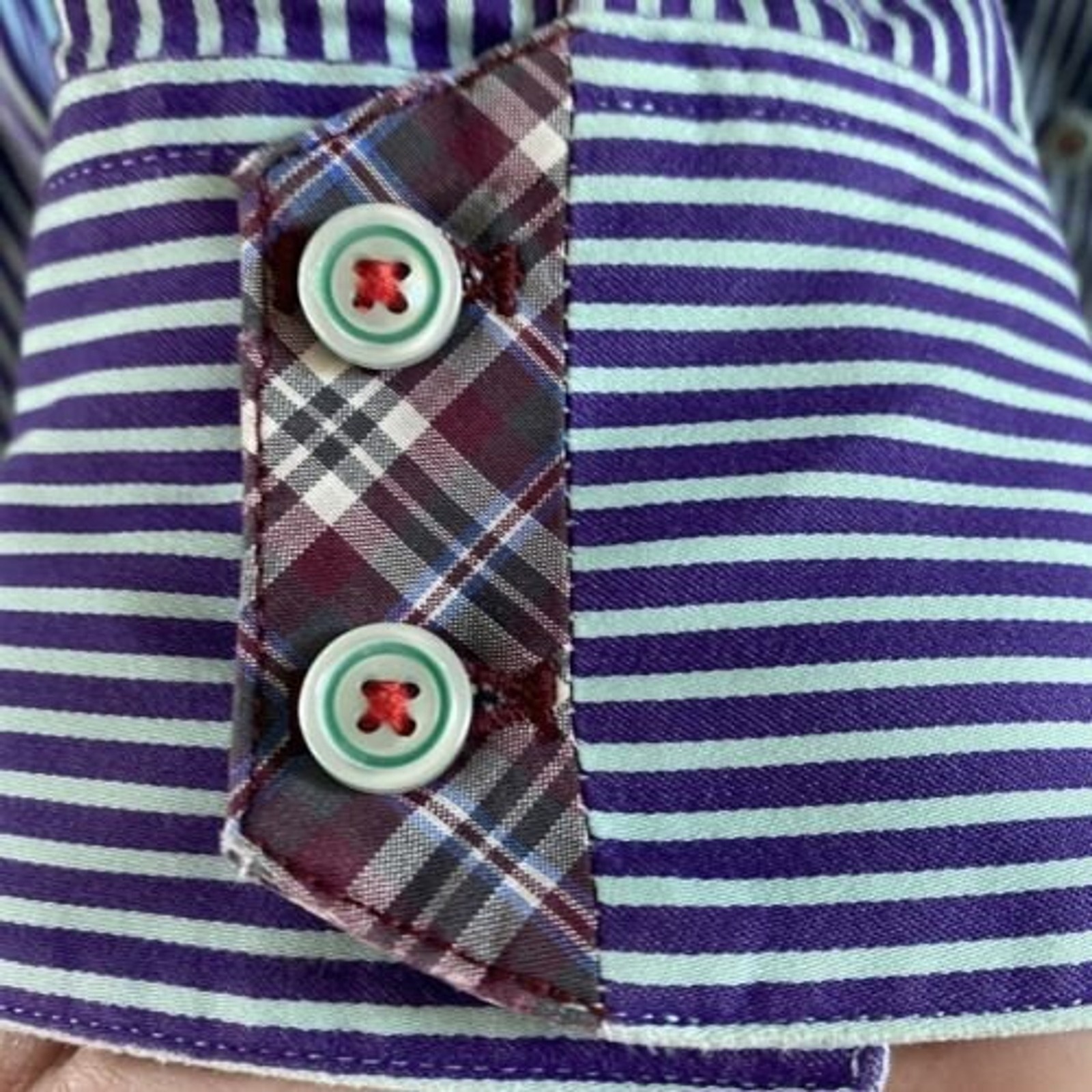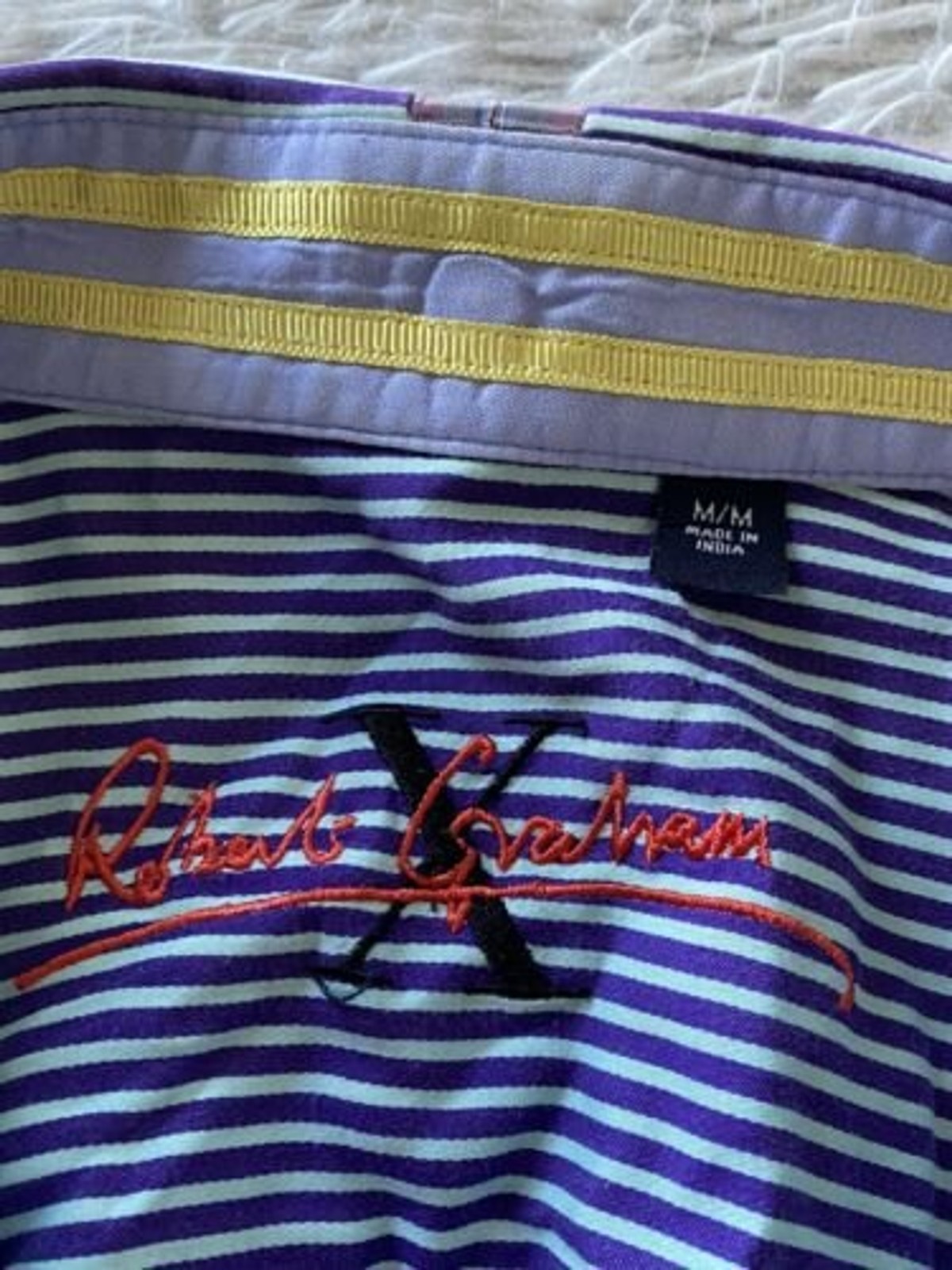 как выглядит Robert Graham X Mens Medium Flip Cuff Long Sleeve Button-Up Shirt Purple Striped фото