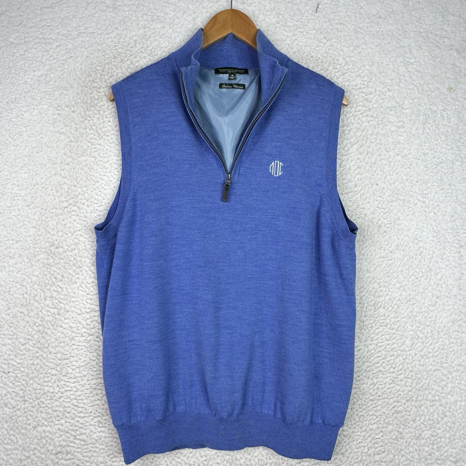 Fairway Greene Merino Wool Sweater Vest Mens M Blue Quarter Zip Golf Lined