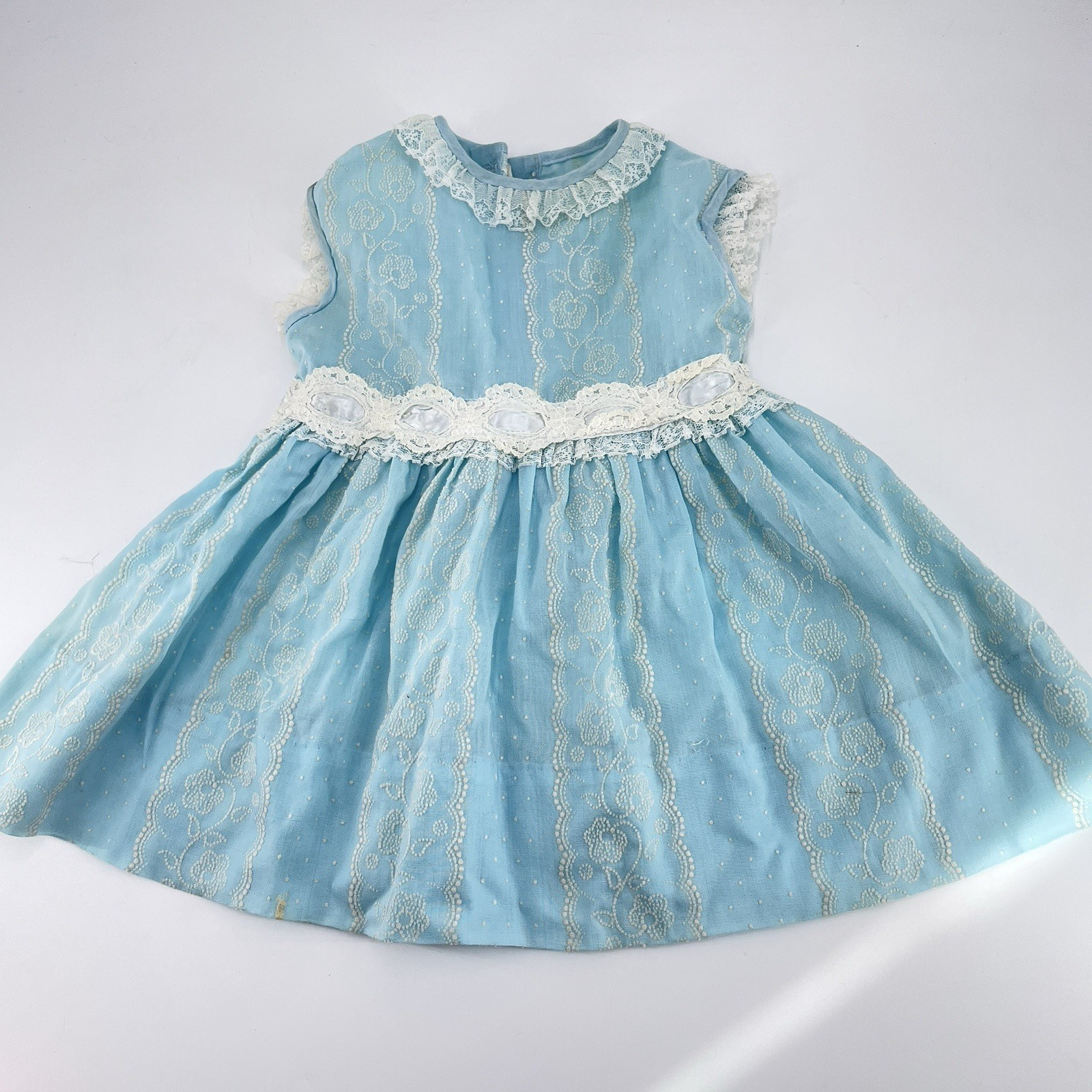 2 Vintage Baby Toddler Dresses Pink smocked 18 months Blue Lace 2T Easter Dress