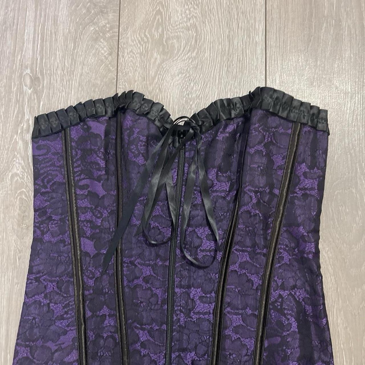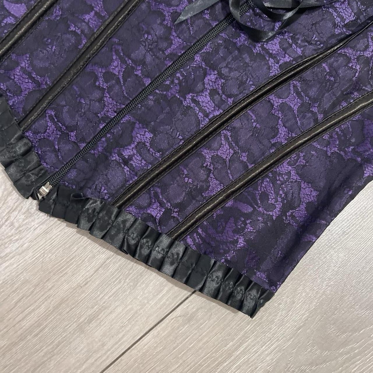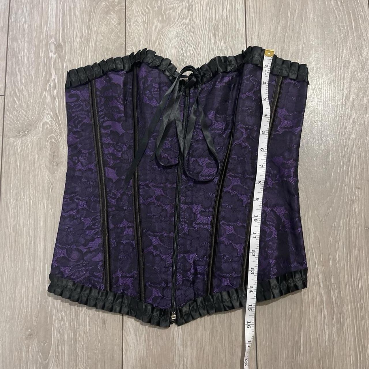 как выглядит Women s Y2K Gothic Purple/Black Lace Satin Corset Top size S/M фото