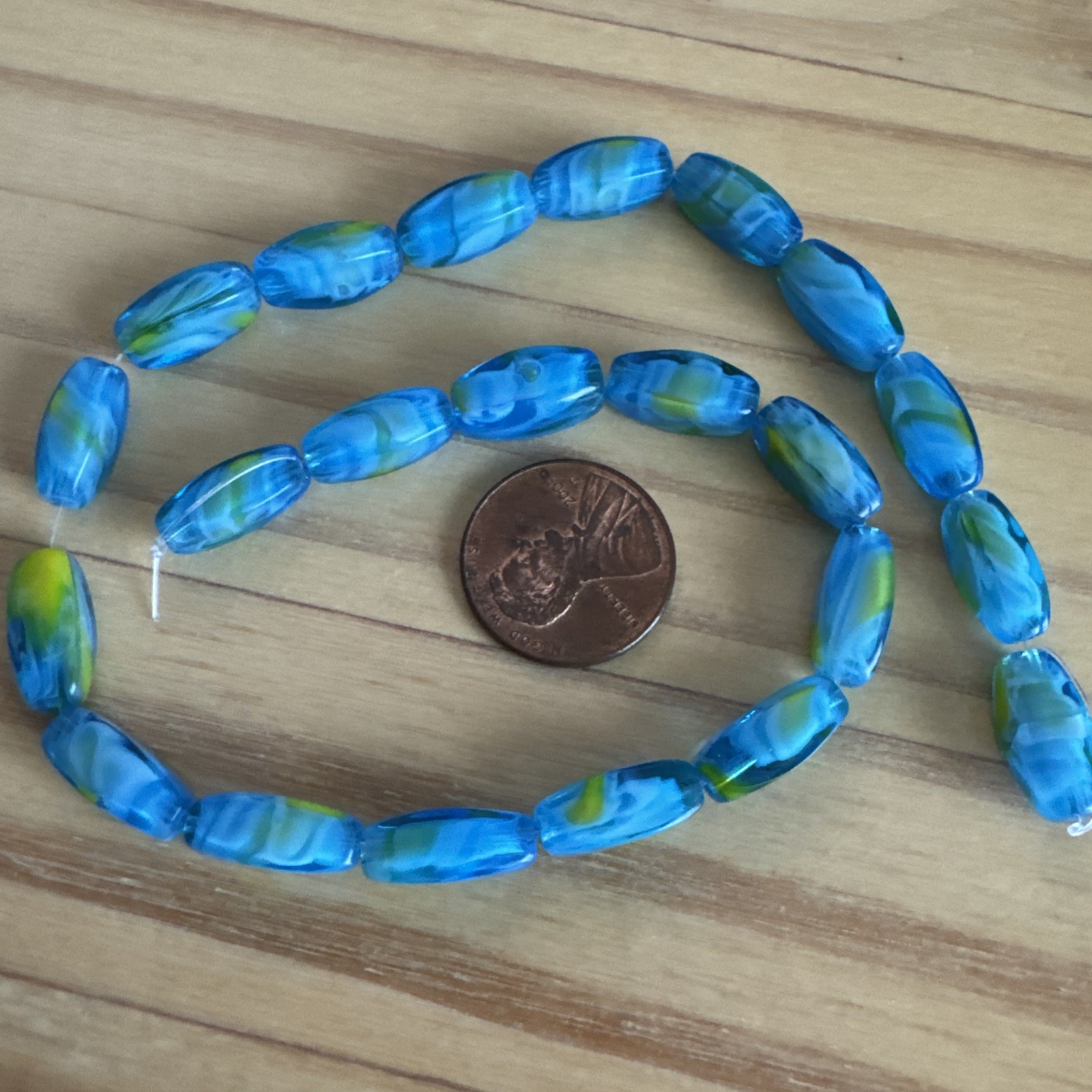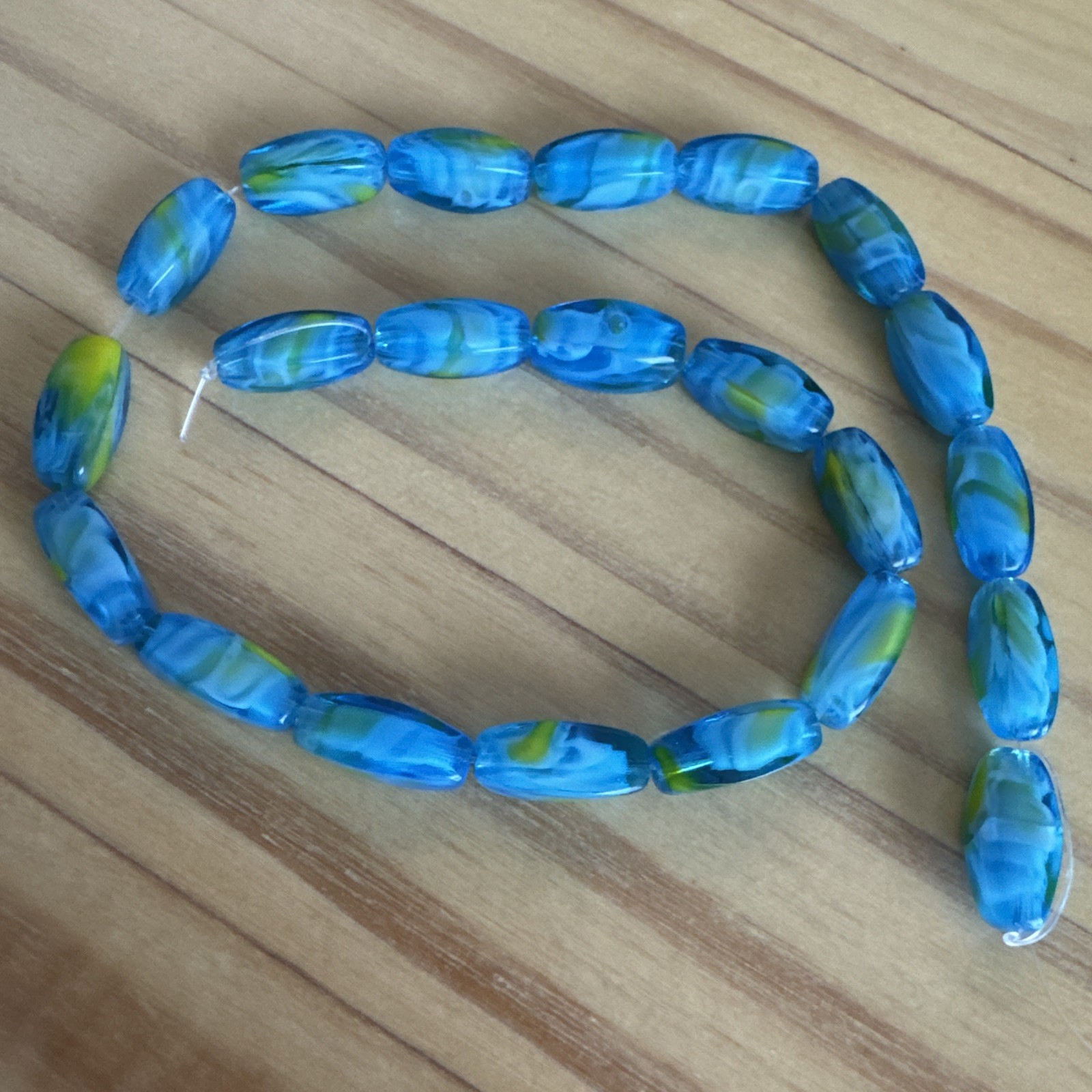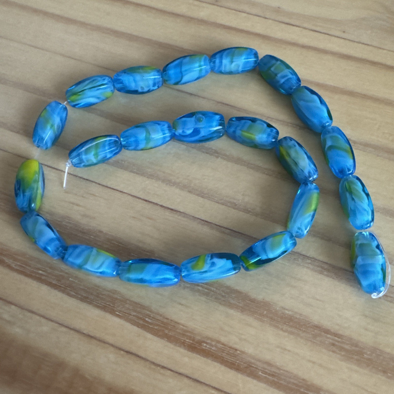 22 TURQUOISE BLUE W/ YELLOW OVAL- Lampwork Glass Beads 14mm DIY JEWELRY MAKING