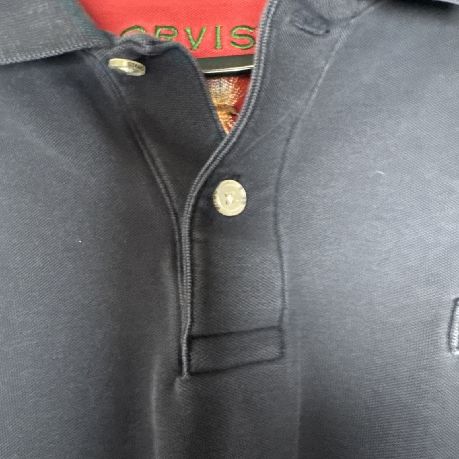 ORVIS Men s Navy Blue FLY FISHING LOGO 3 Button Short Sleeve Polo Shirt 2XL B4
